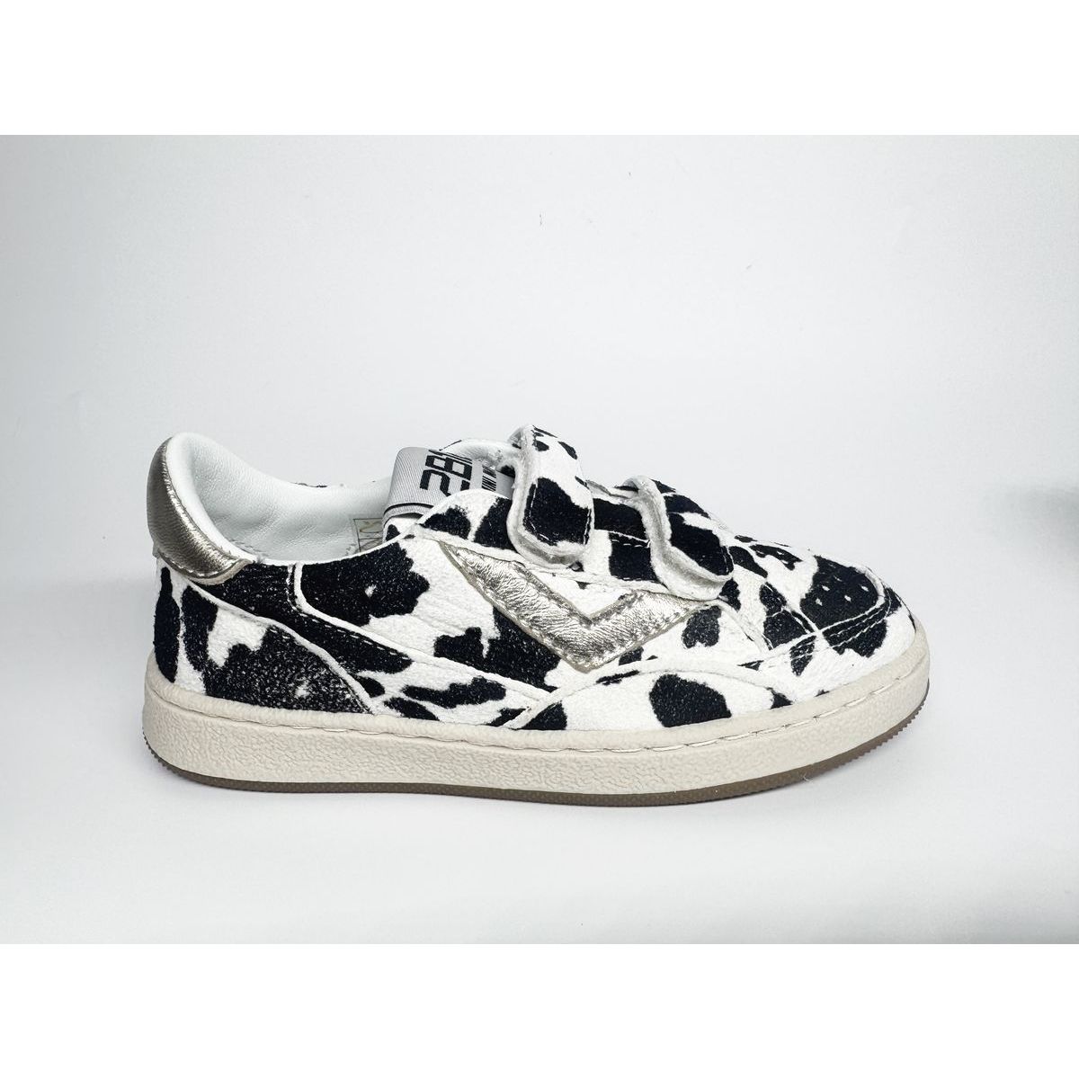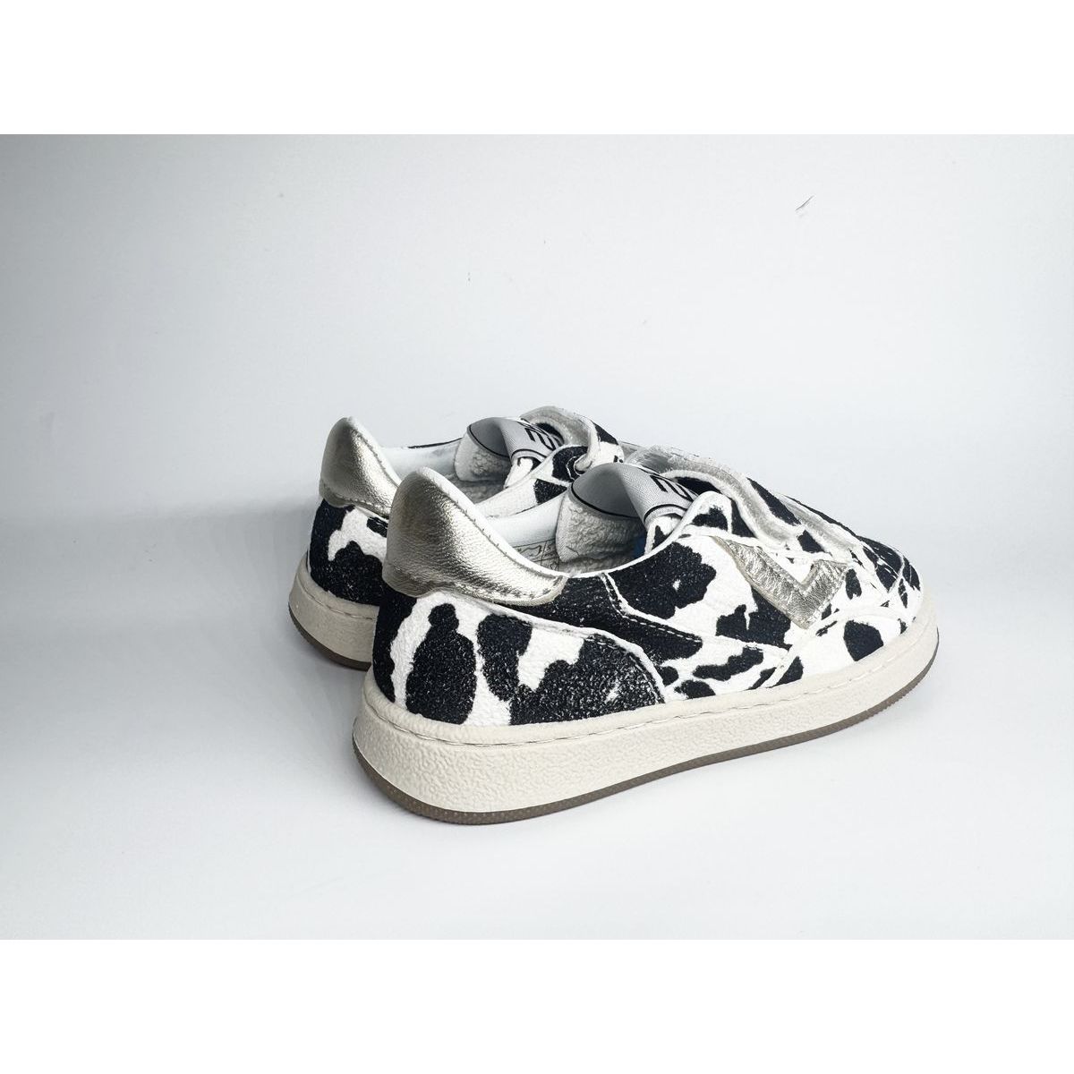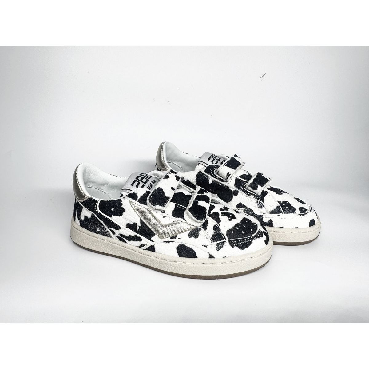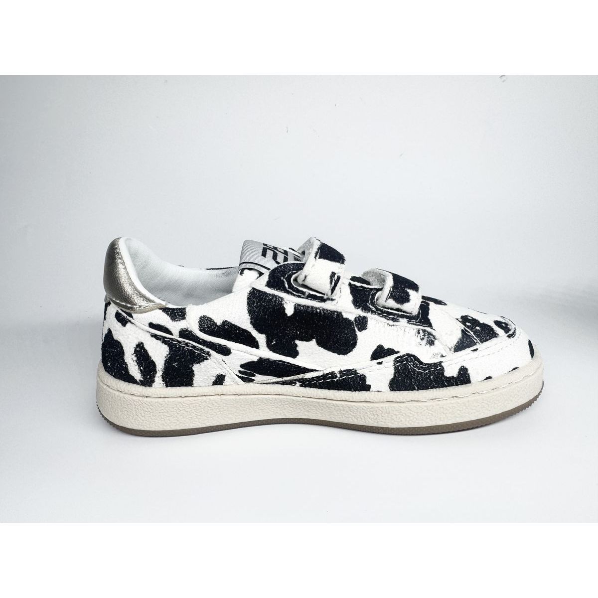 Le modèle Baby Mini Play 170 Blanc Vache de la marque italienne 2B12 et la version mini de (Quattrobarradodici) un sneaker à double velcros