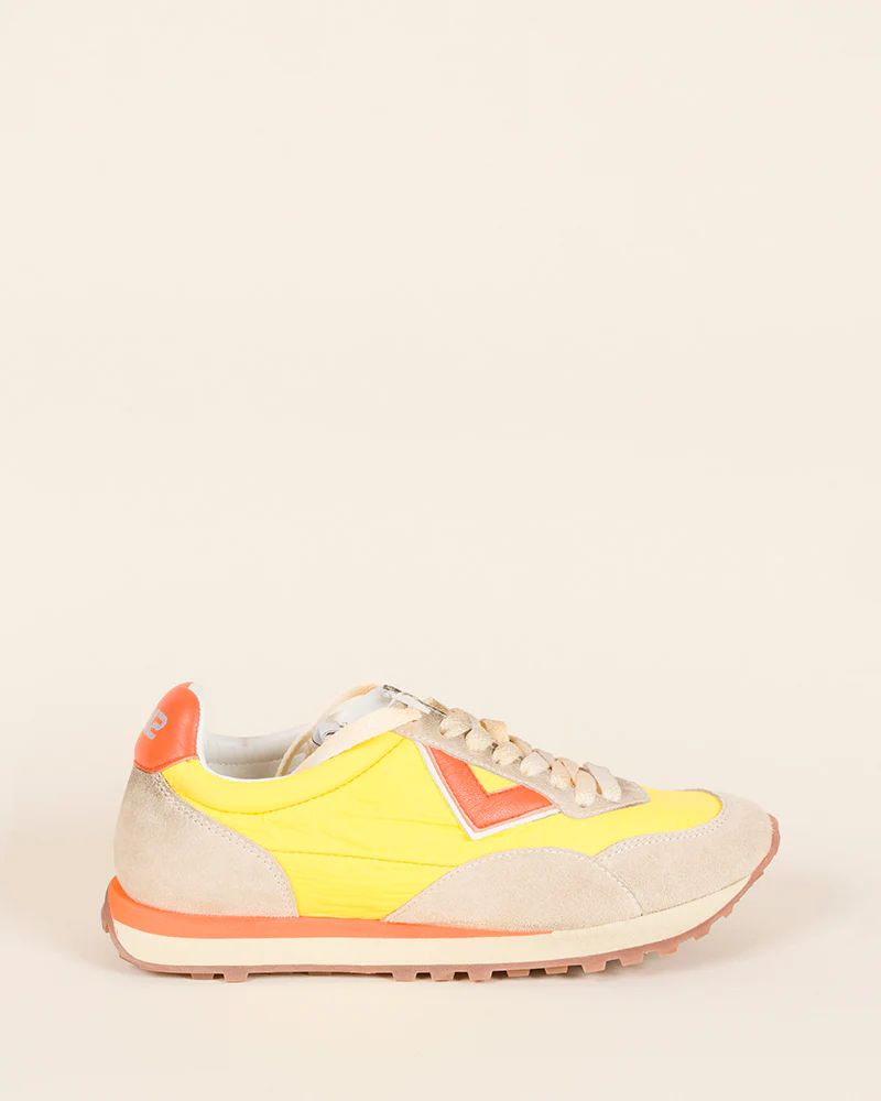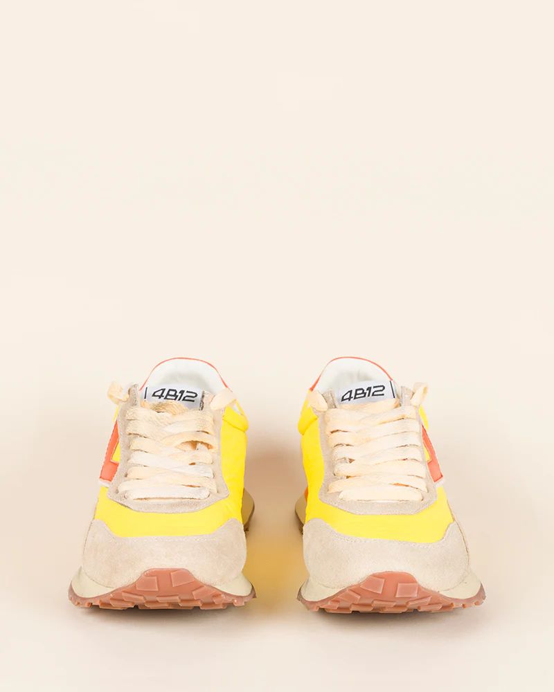 Le modèle Vintage Run D13003 Jaune Orange de la marque italienne 4B12 (Quattrobarradodici) est un sneaker