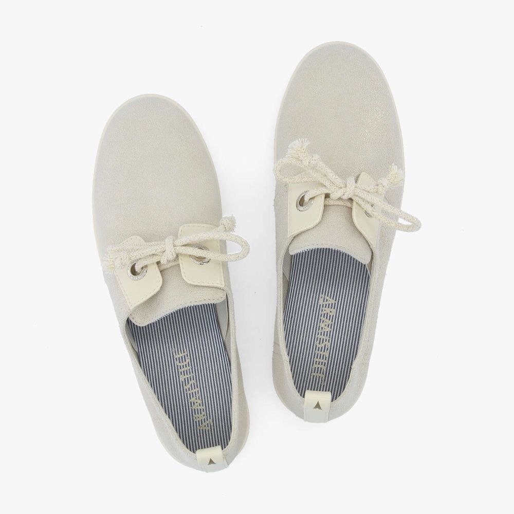 Le modèle Stone Glove Shiny Suède Light Gold de la marque ARMISTICE est une paire de chaussure qui reprend l’allure iconique de la STONE ONE tout en se révélant dans une version premium, au style épuré et naturel.