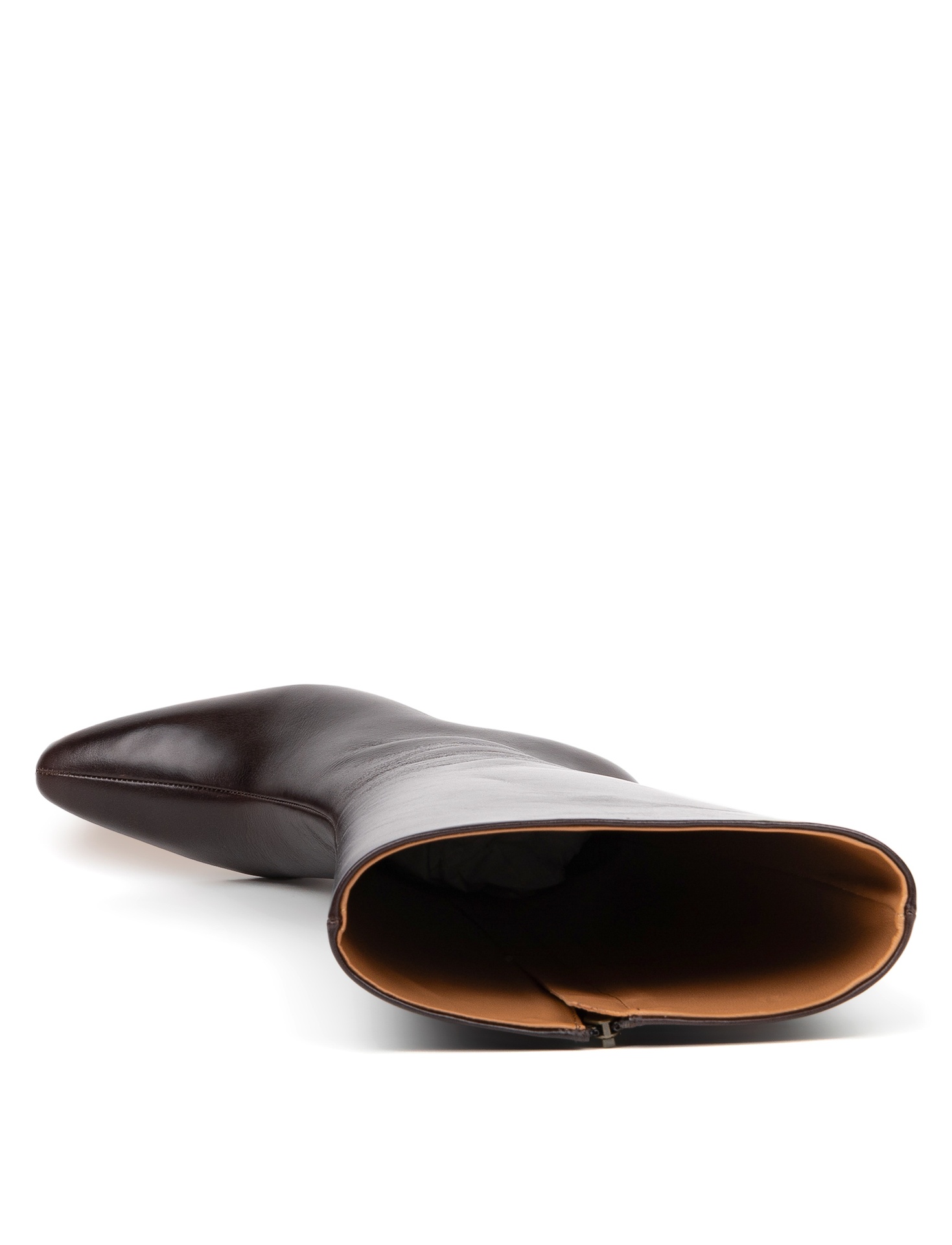 Le modèle Coline en cuir espresso possède un talon de 7 cm