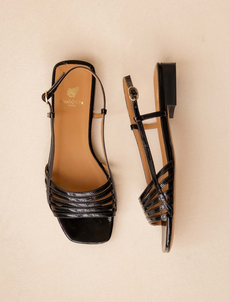 Le modèle Diana Cuir Vernis Vernis Noir Vinyl de la marque française Bobbies est une sandale