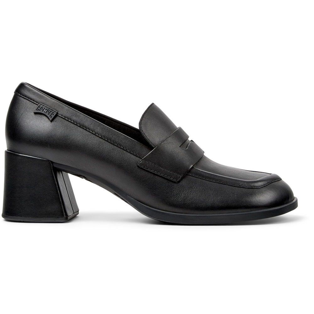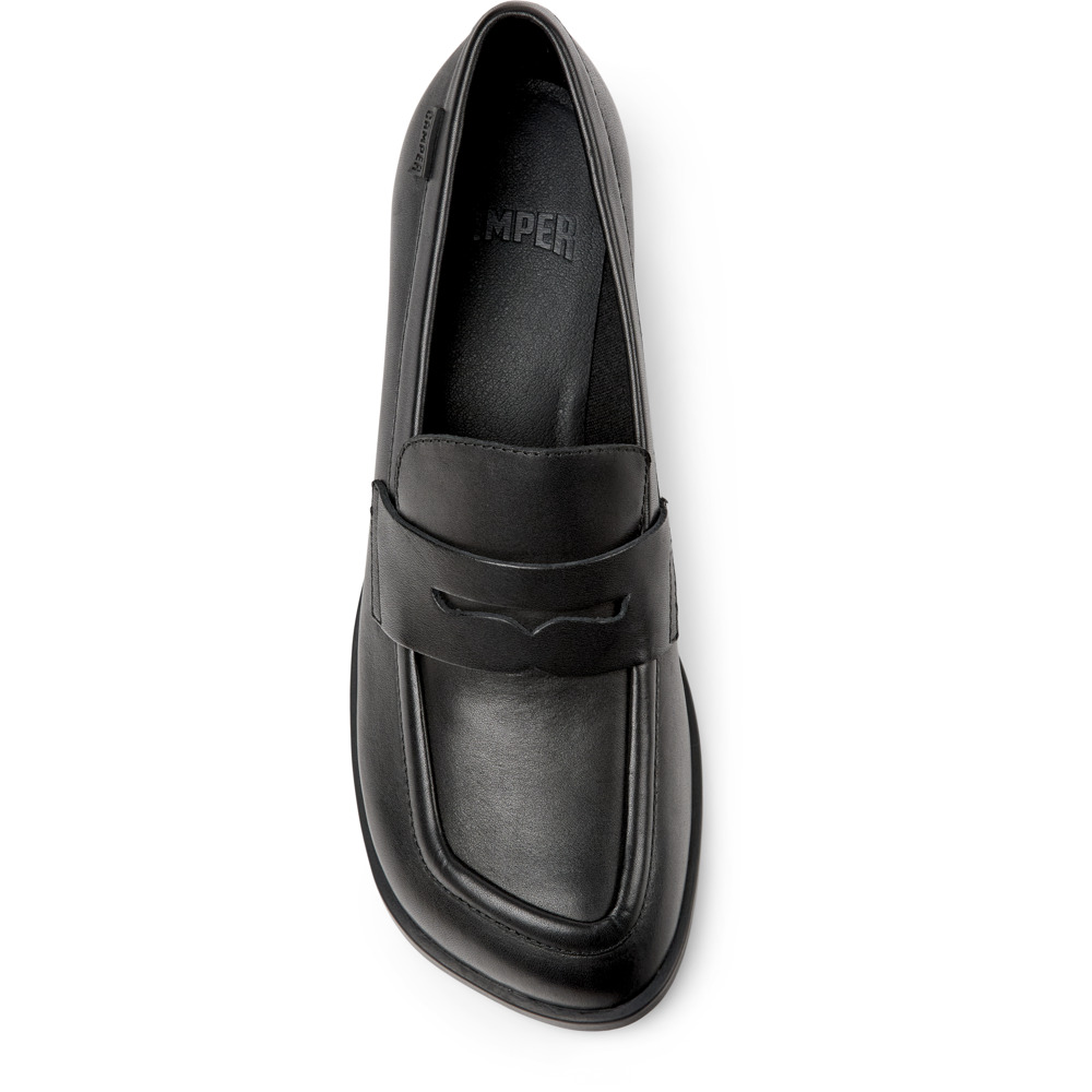 Mocassins en cuir de vachette noir pour femme avec semelle intérieure OrthoLite® Recycled™ et semelle extérieure en caoutchouc et ABS.