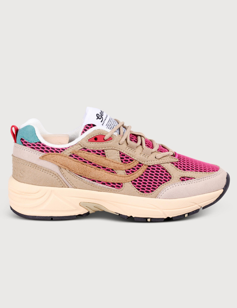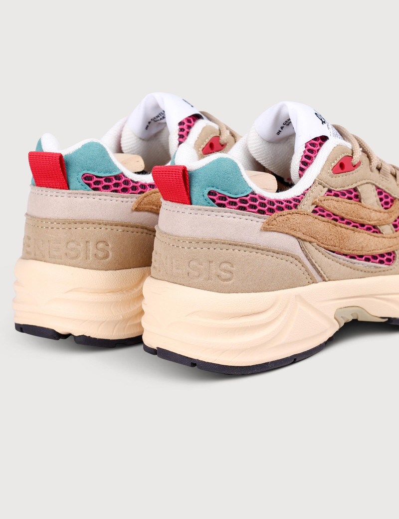 Le modèle G-ECO’99 Contra mesh, utilise des matériaux innovants et économes en ressources, tels que du cuir vegan à base de déchets de maïs et du CONTRA MESH, un tissu maillé durable fabriqué à partir de bouteilles en PET 100 % recyclées.