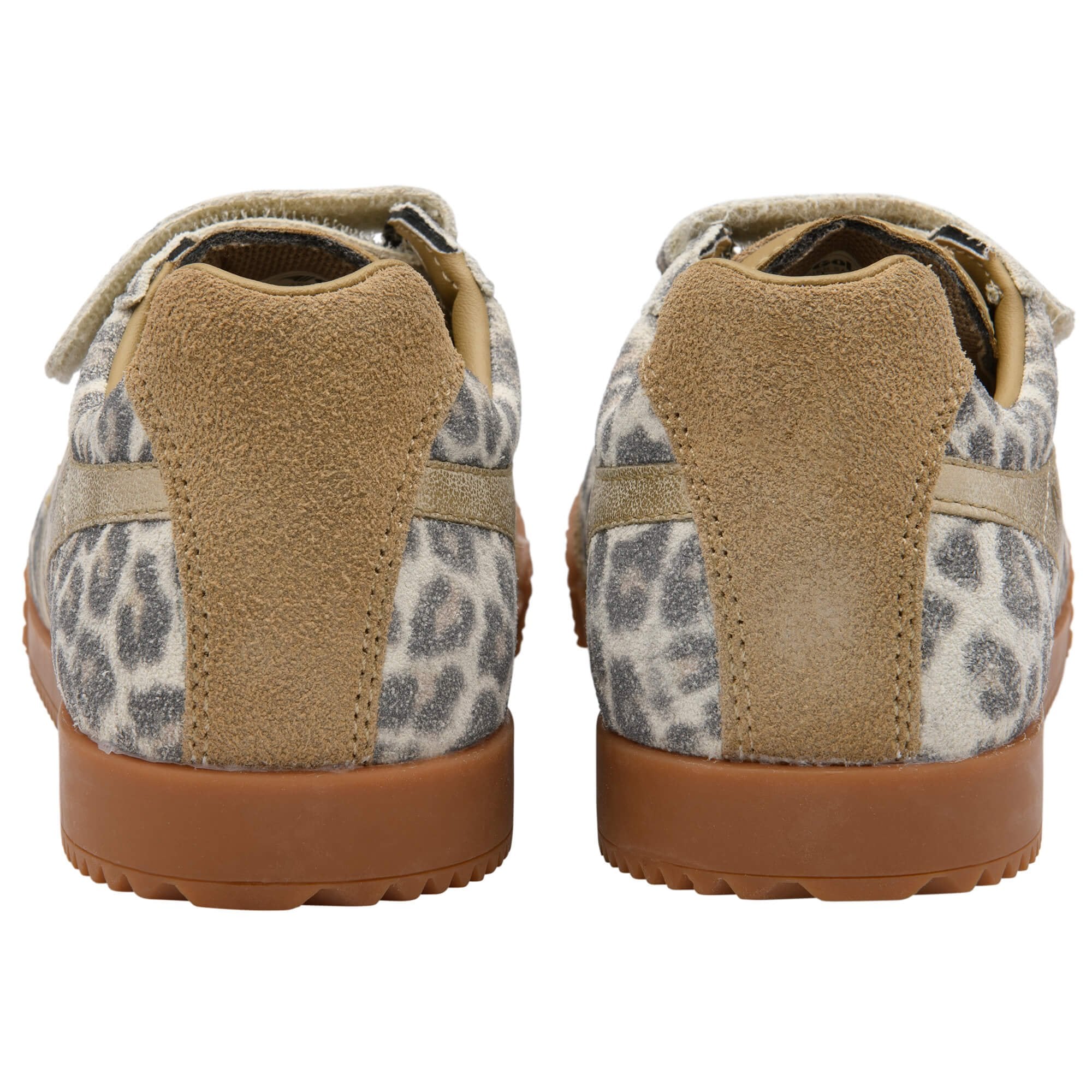 Le modèle Harrier Strap Snow Leopard Light Caramel Gold de la marque anglaise Gola est la basket pour enfants arbore une élégante empeigne imprimée léopard des neiges, rehaussée d’une bordure dorée discrète et de finitions en daim caramel clair.
