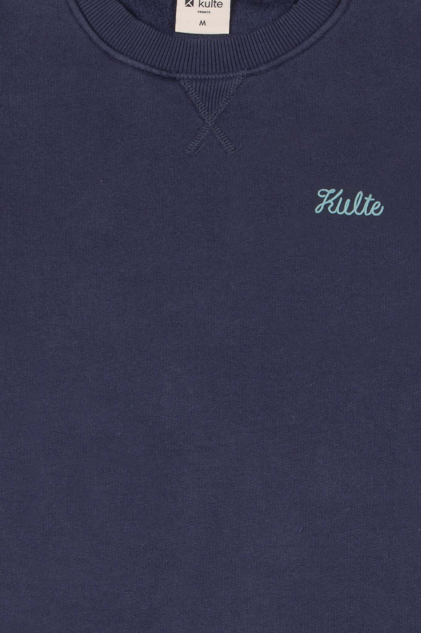 Le modèle Sweat Script Bleu Marine de la marque marseillaise KULTE est un sweat iconique avec une coupe classique .