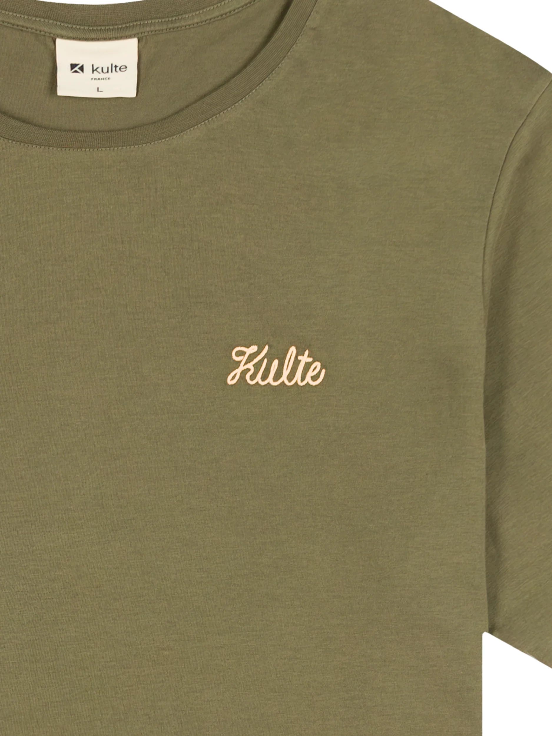 Le modèle T-shirt Script kaki de la marque marseillaise KULTE est un sweat iconique avec une coupe classique .