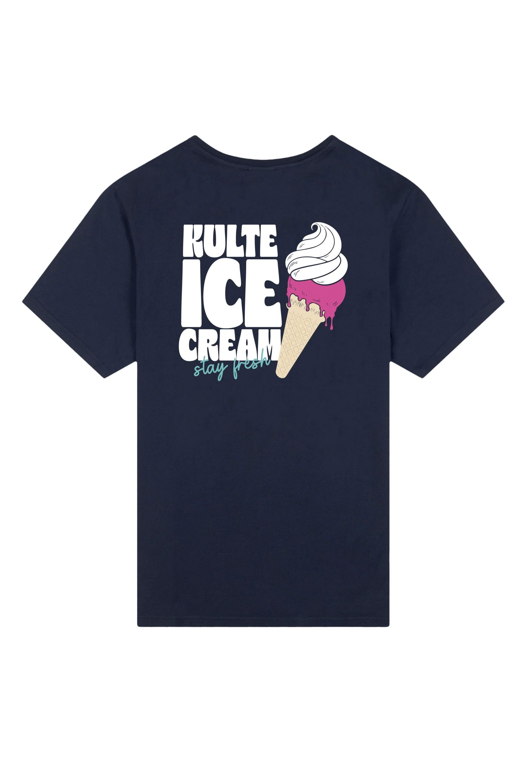 Le modèle TEE-SHIRT ICE CREAM BLEU MARINE de la marque marseillaise KULTE est un tee-shirt à col rond unisexe