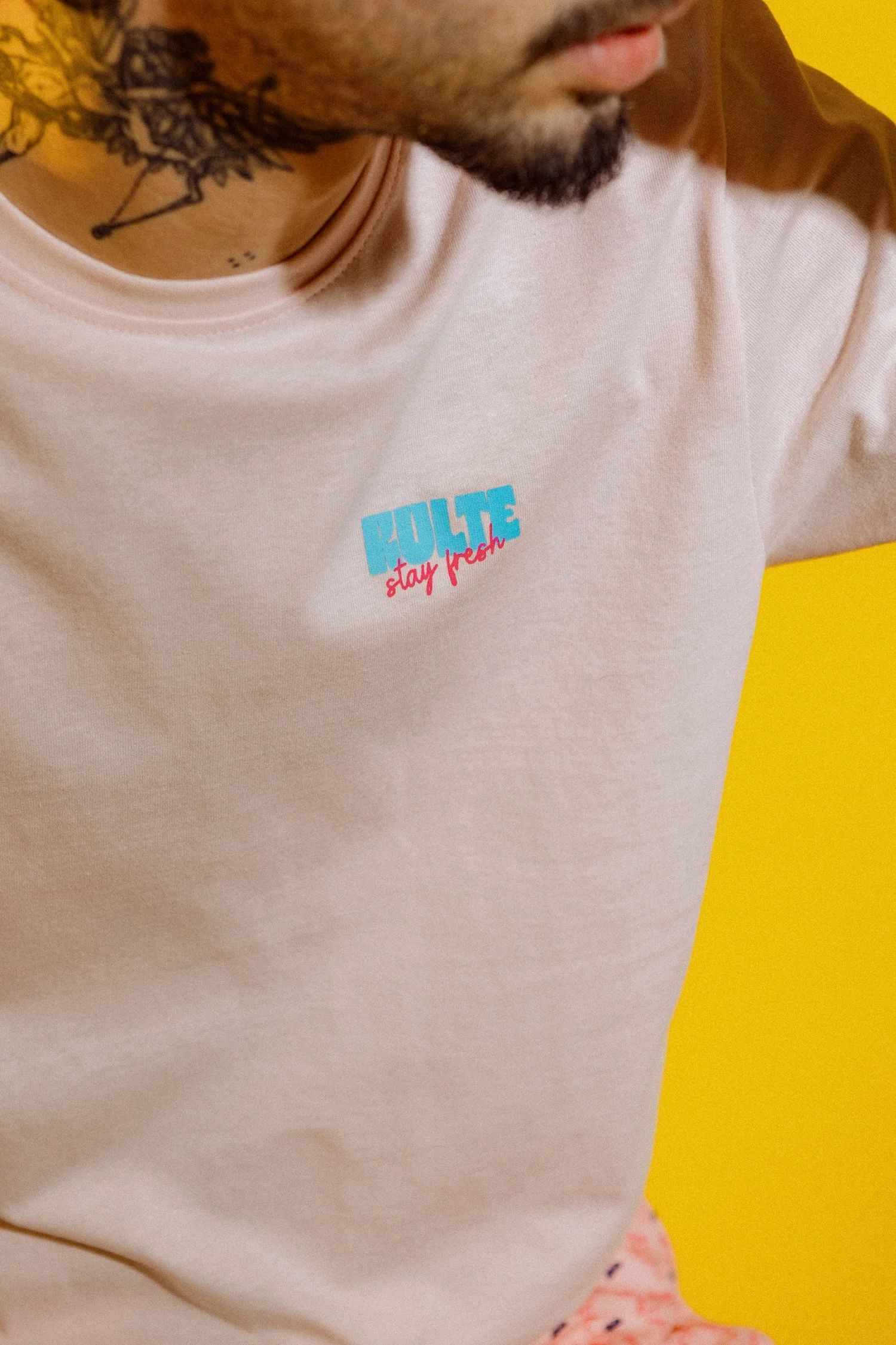 Sur base rose, le contraste du blanc et du rose apporte une vraie puissance graphique tout en restant facile à porter.