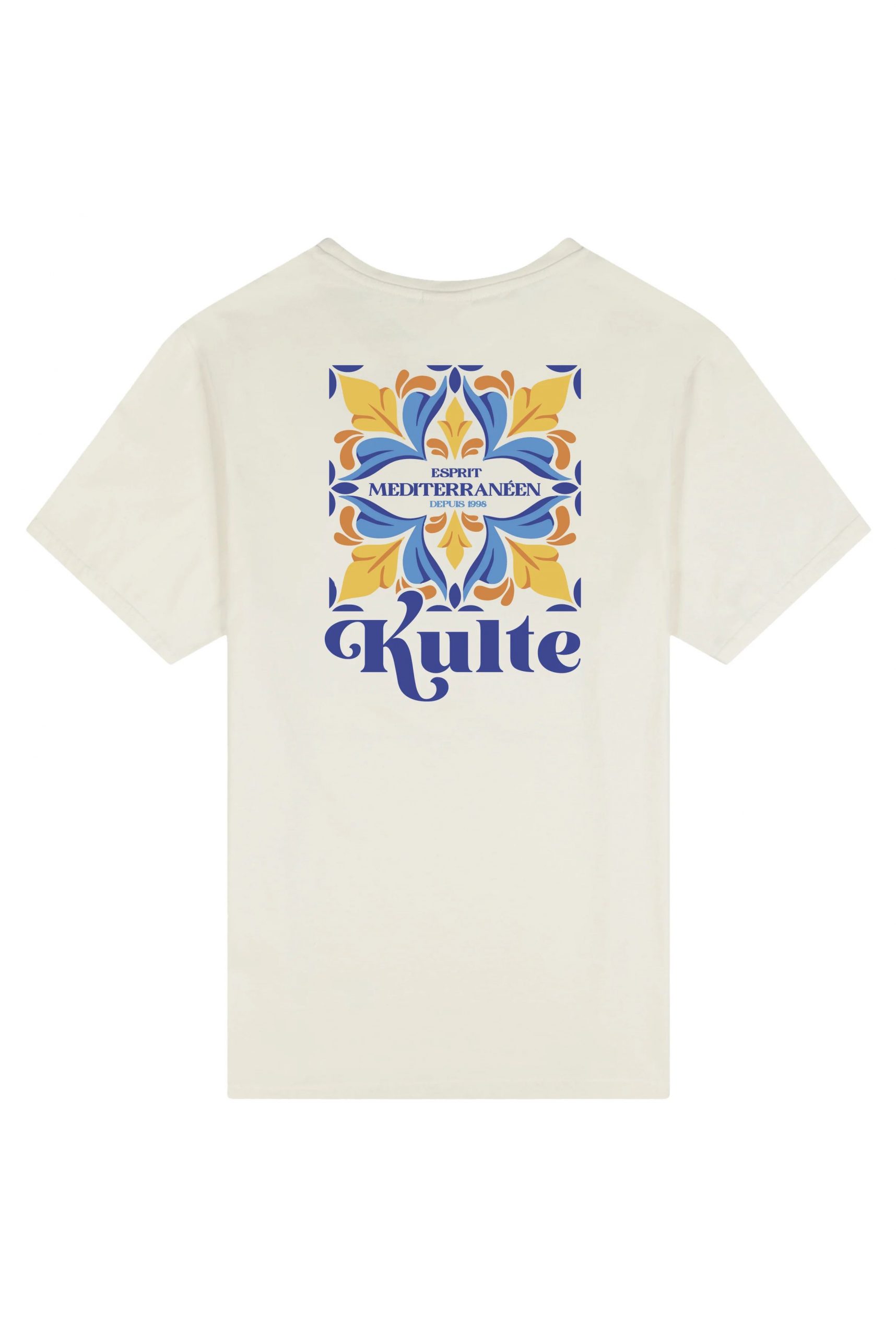Le modèle TEE-SHIRT MEDITERRANEE OFF WHITE de la marque marseillaise KULTE est un tee-shirt à col rond unisexe