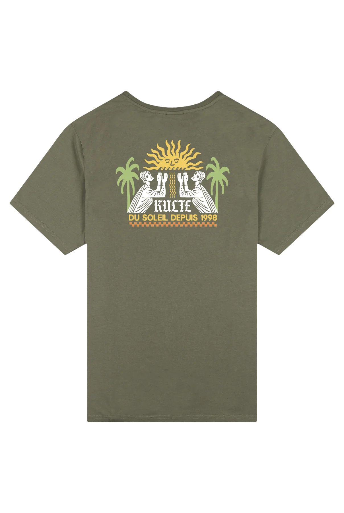 Le modèle TEE-SHIRT SOLEIL KAKI de la marque marseillaise KULTE est un tee-shirt à col rond unisexe