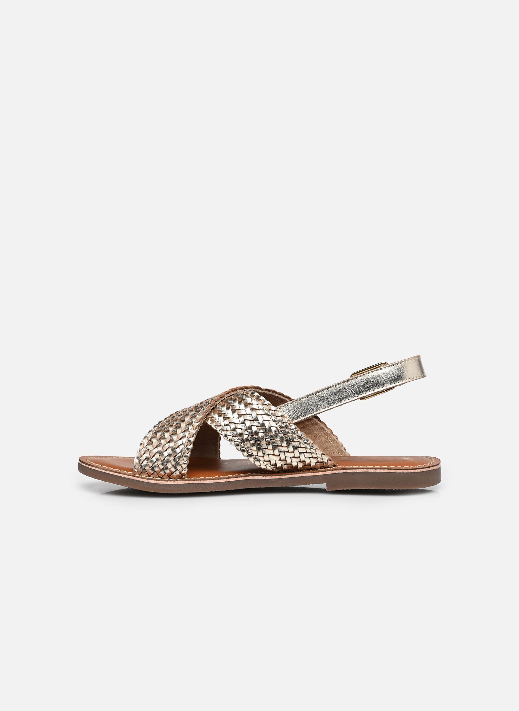 Cette sandale est conçue en cuir de couleur doré, ce qui lui confère une allure luxueuse et glamour. Le matière cuir  apporte une touche d’éclat et de brillance, parfait pour compléter une tenue habillée ou pour ajouter une touche sophistiquée à un look plus décontracté.