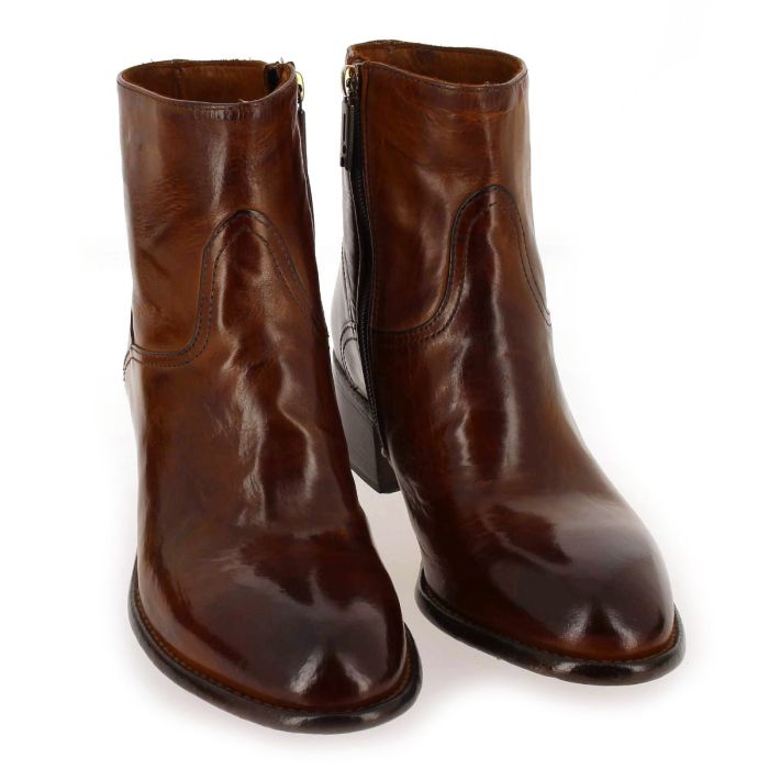 Le modèle AP07A ranch Cognac de la marque italienne LEMARGO est un boots talon zip sur le côté