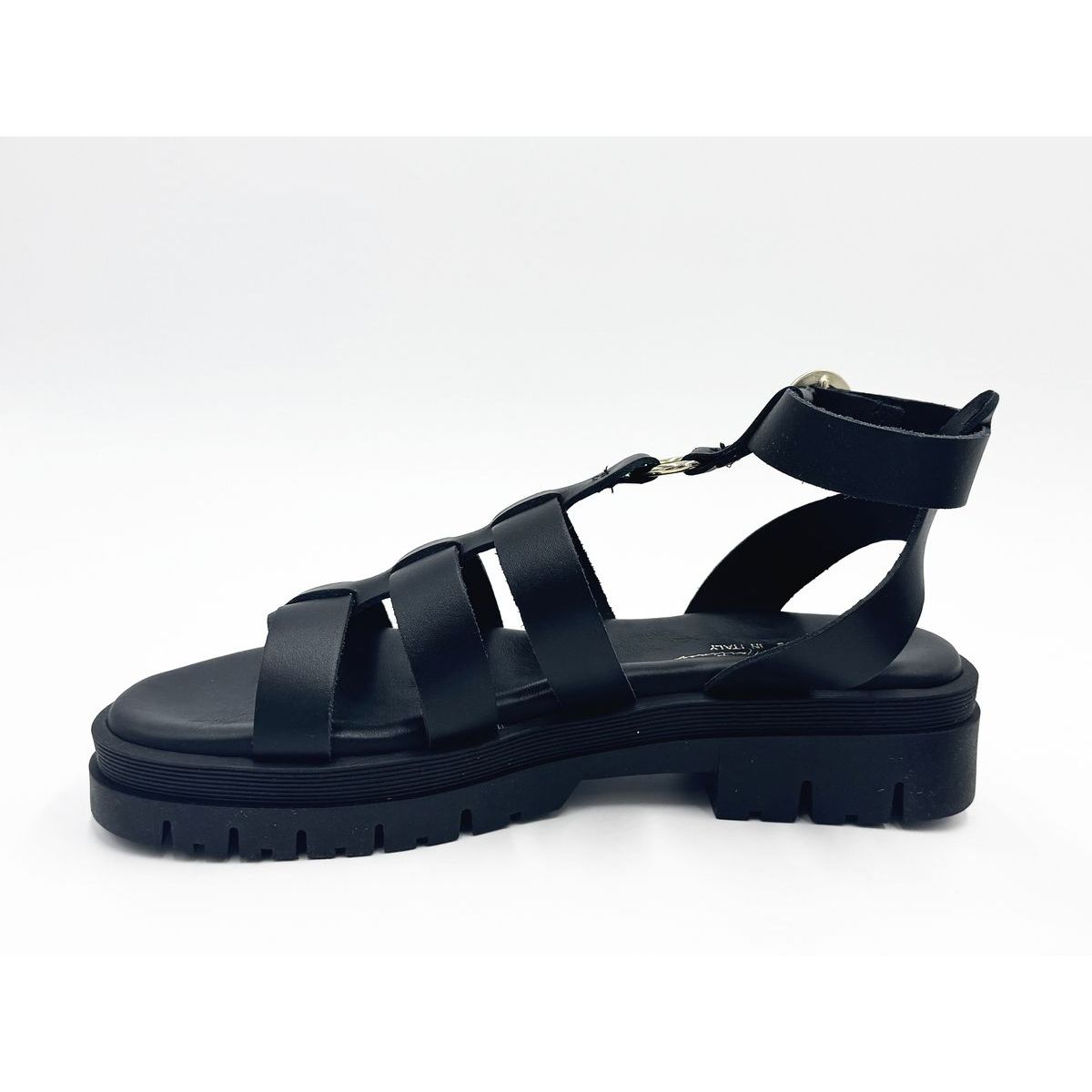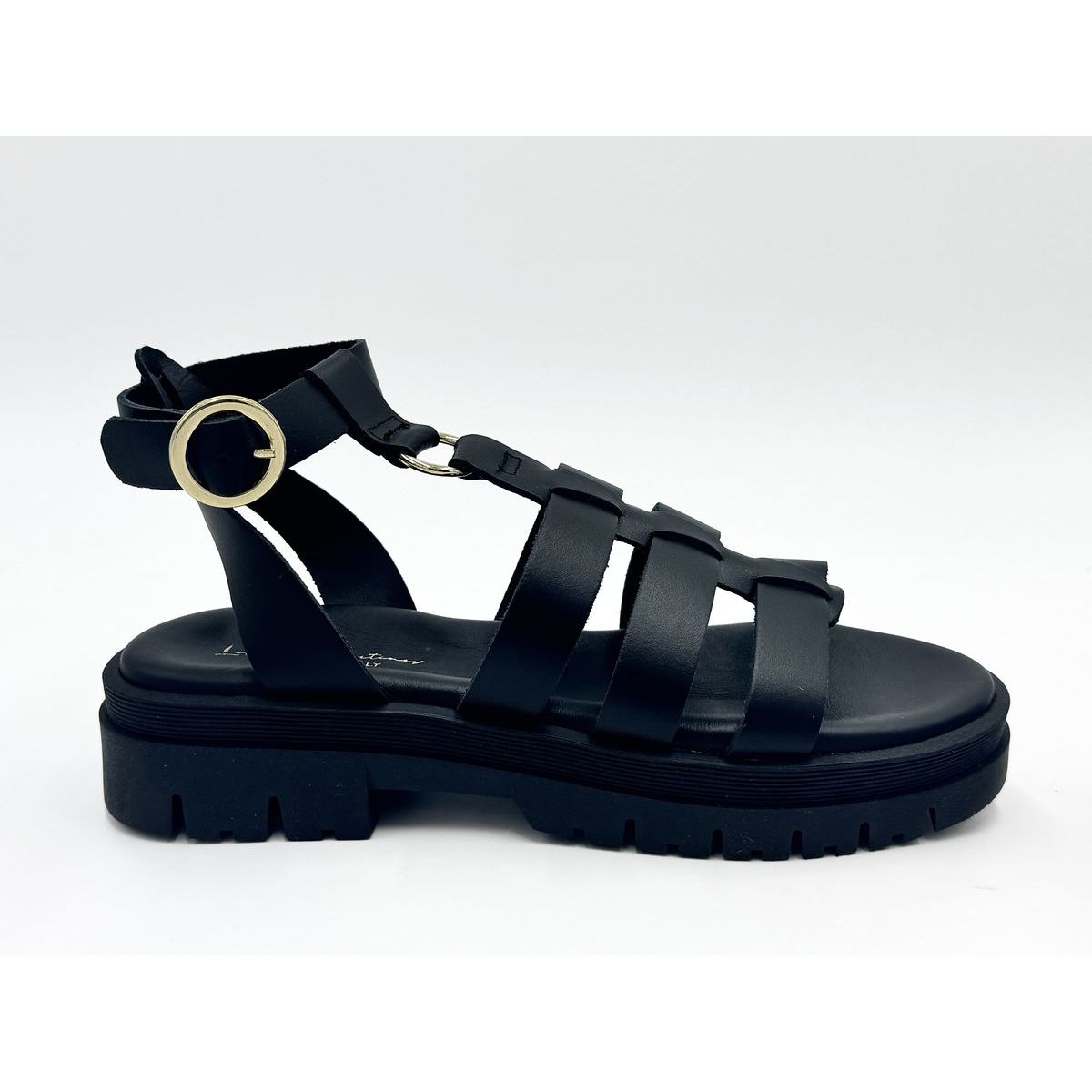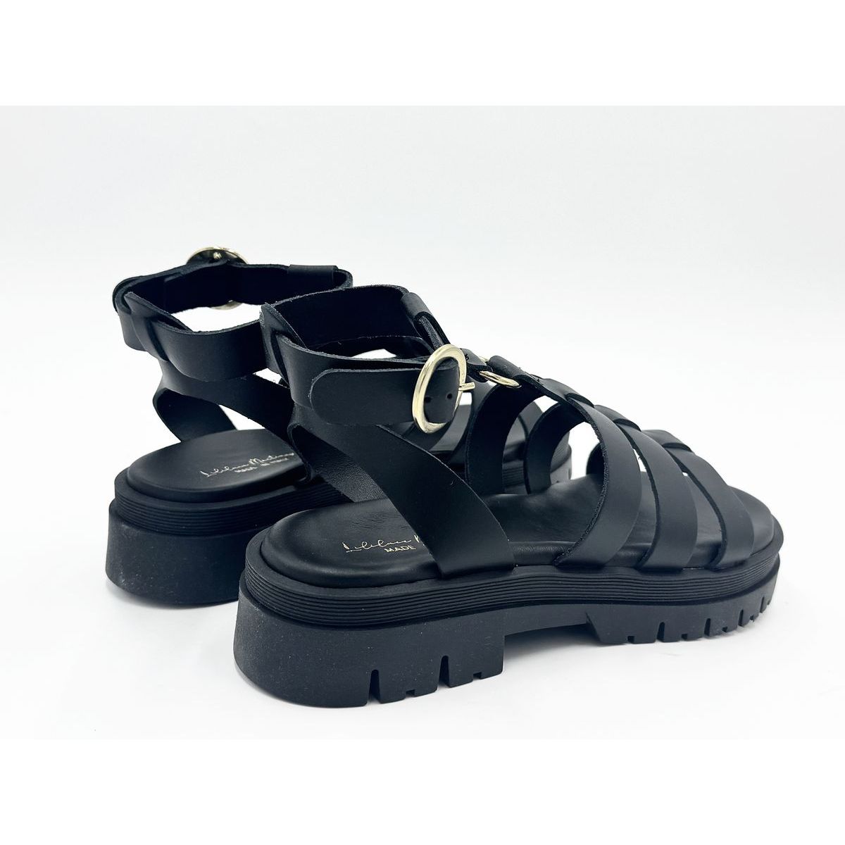 Le modèle Anaelle Spartiate cuir Noir de la marque marseillaise LILILUCE MARTINES est une spartiate de hauteur de talon 3 cm