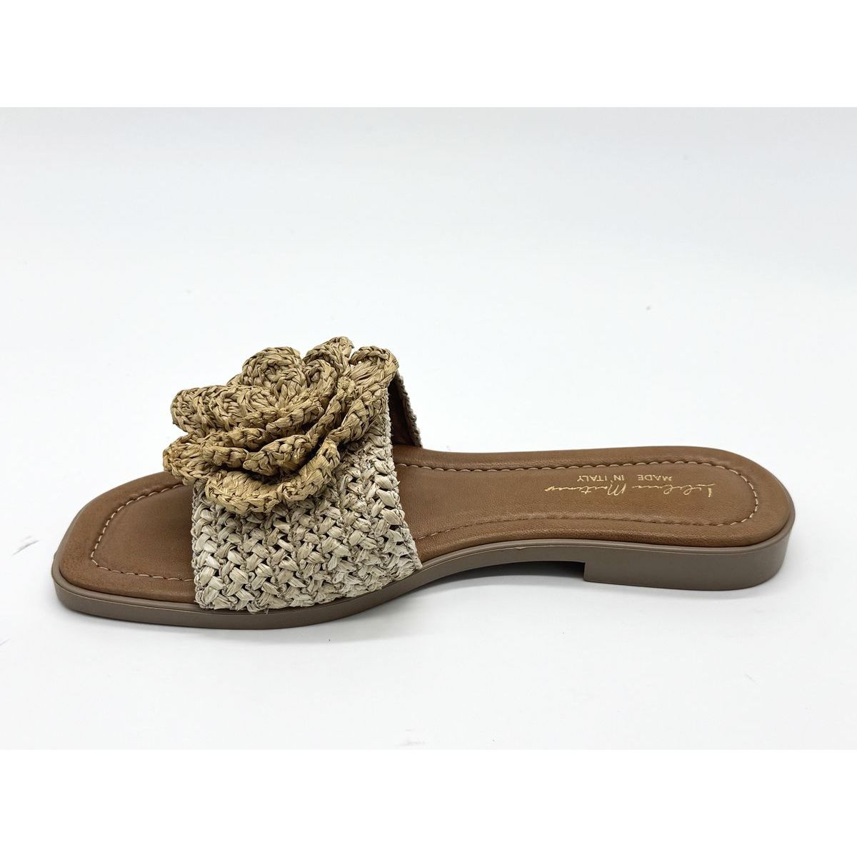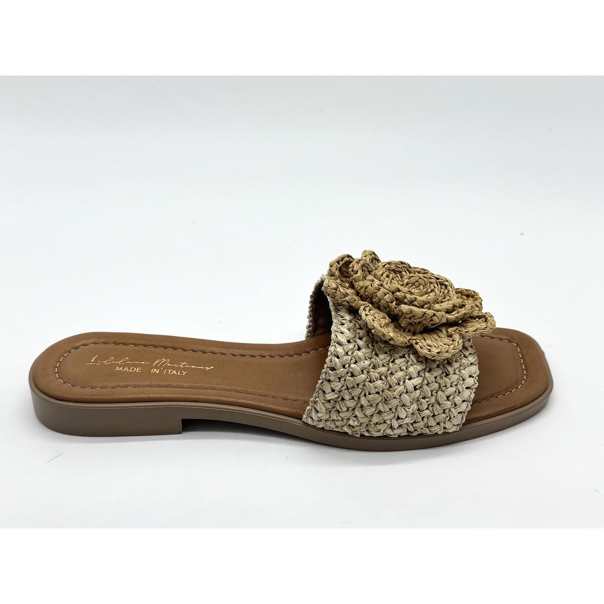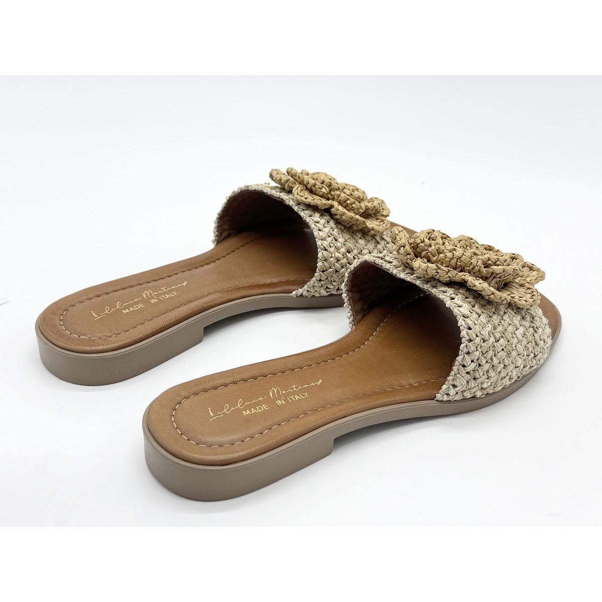 Le modèle Lou Mule Raphia Naturel de la marque marseillaise LILILUCE MARTINES est une mule motif fleur