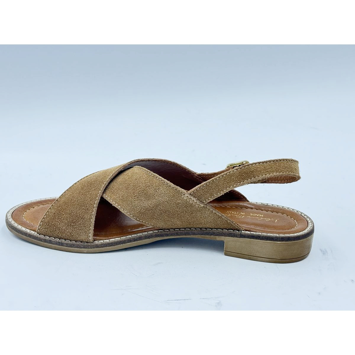 Le modèle Mika Croisé Cuir Suédé Naturel de la marque marseillaise LILILUCE MARTINES est une sandale brides croisées avec une attaché à boucle