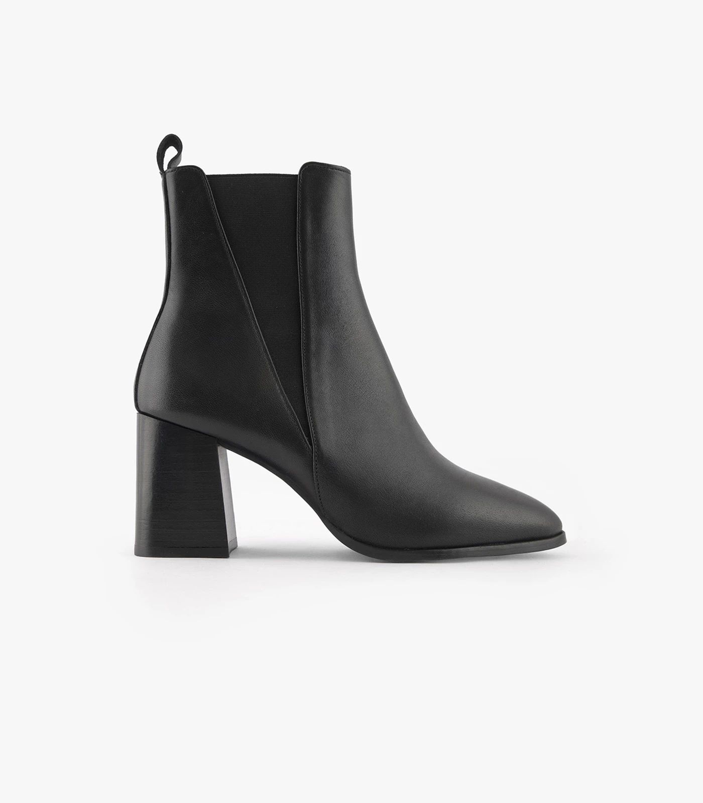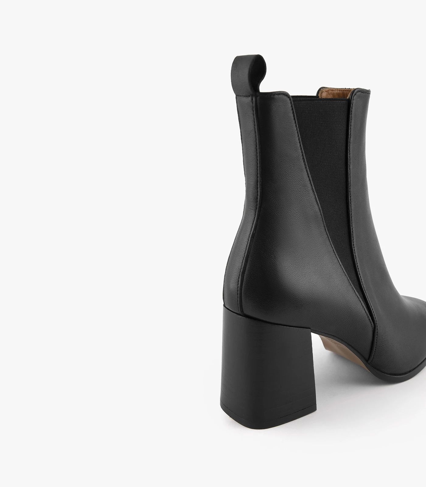 La bottine Sixtine séduit par sa ligne élancée et son talon qui structure la silhouette. Son élastique discret sur le côté assure un enfilage facile tout en élégance.