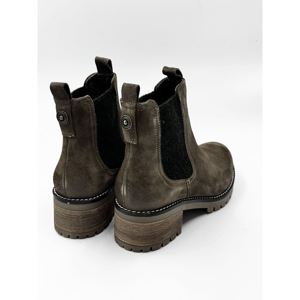 Le modèle Joly Voley Coypu Croute Taupe de la marque portugaise MINKA est un chelsea a monté sur un talon de 5 cm.
