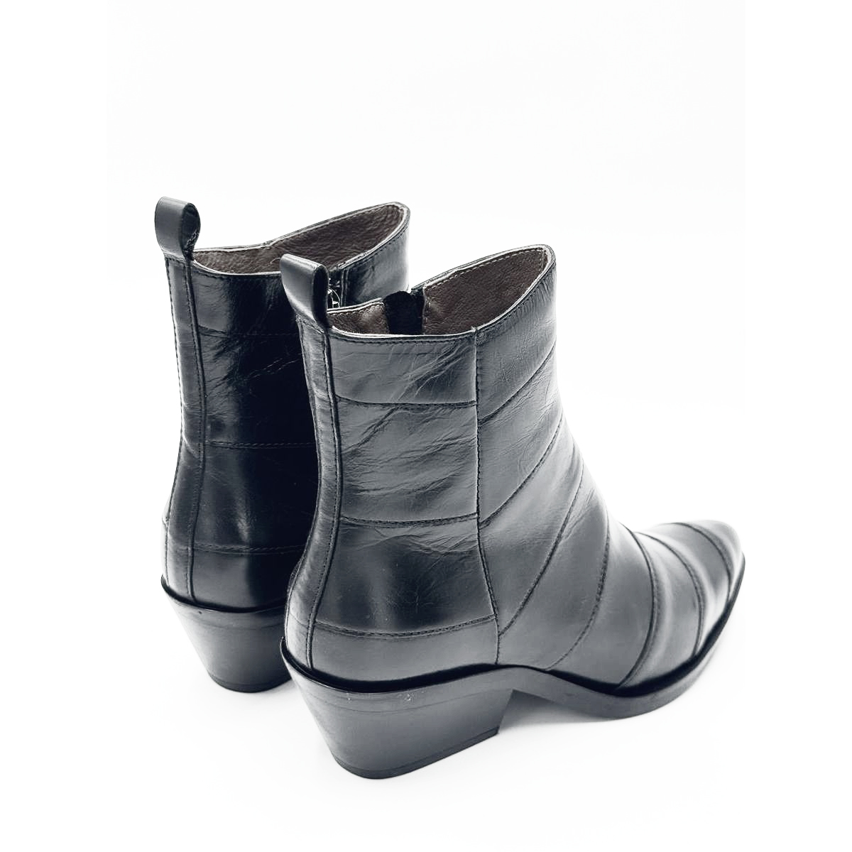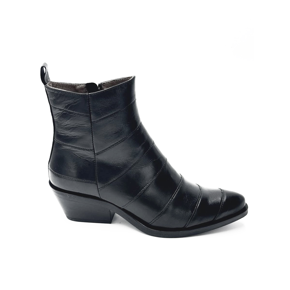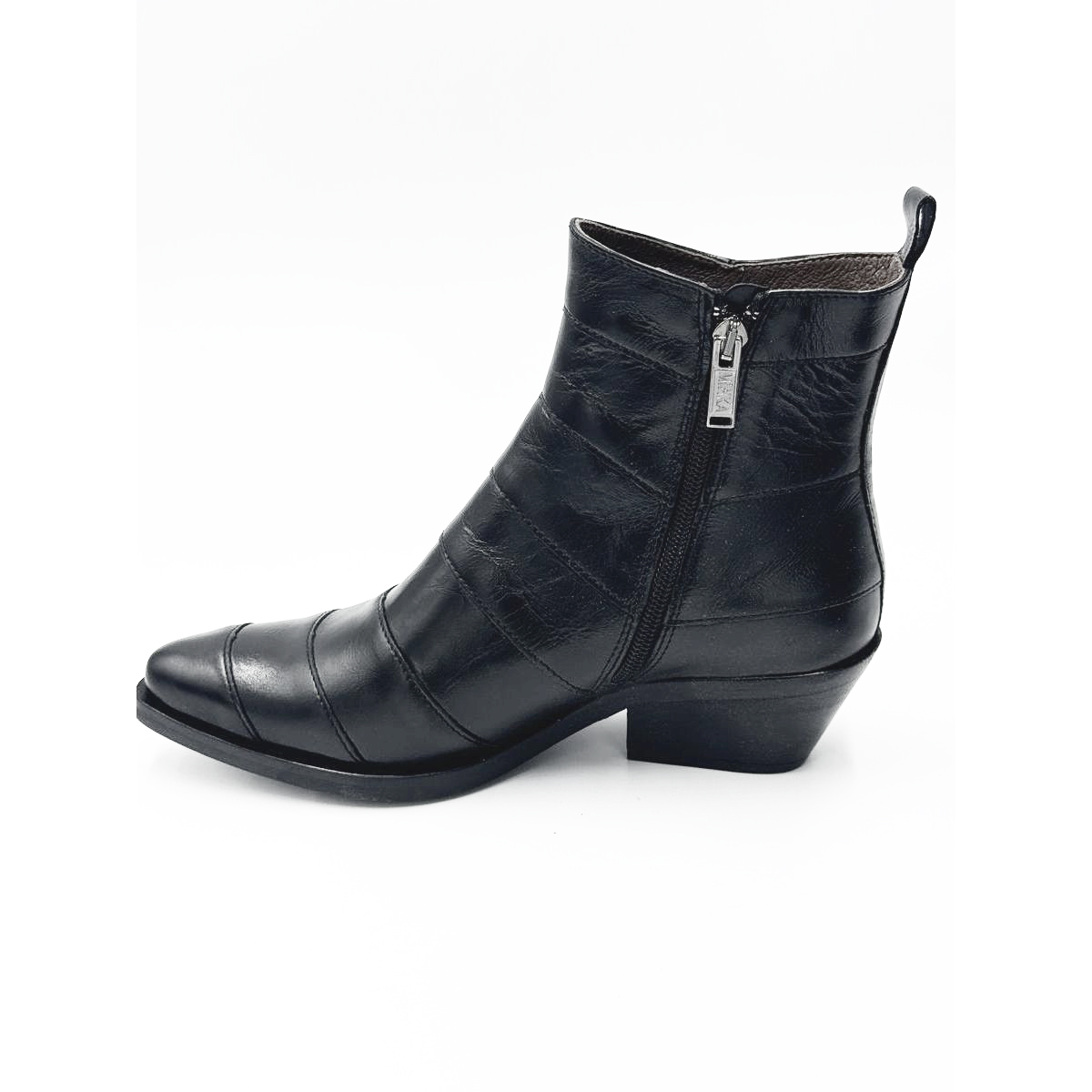 Le modèle Justine Mafra Cuir Noir de la marque portugaise MINKA est un boots tiags avec zip monté sur un talon de 4.5 cm.