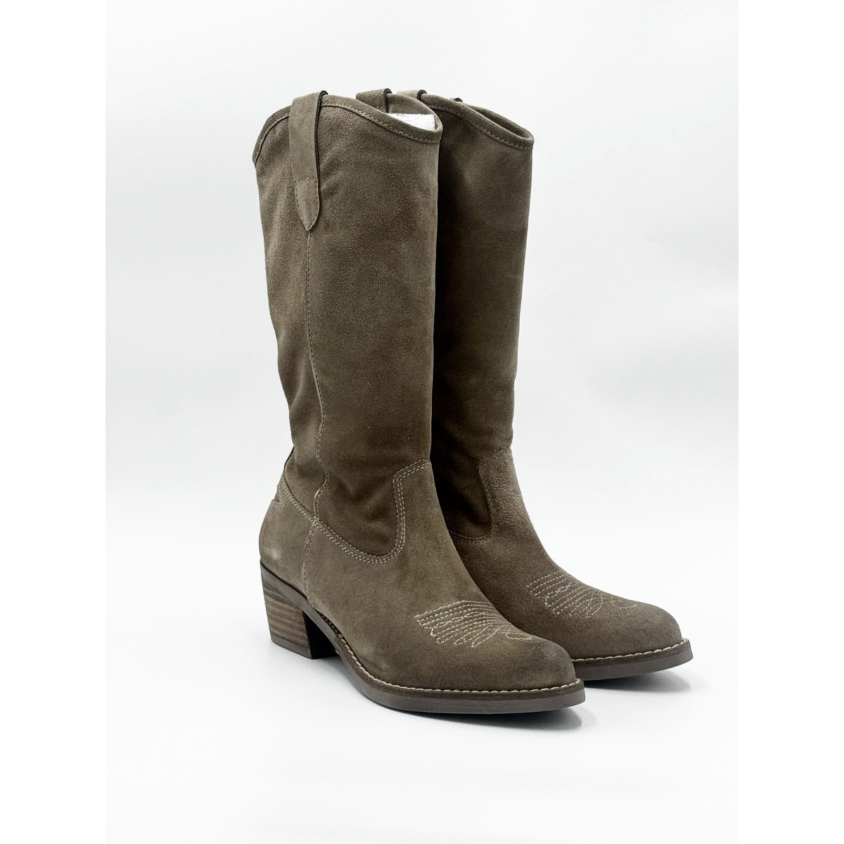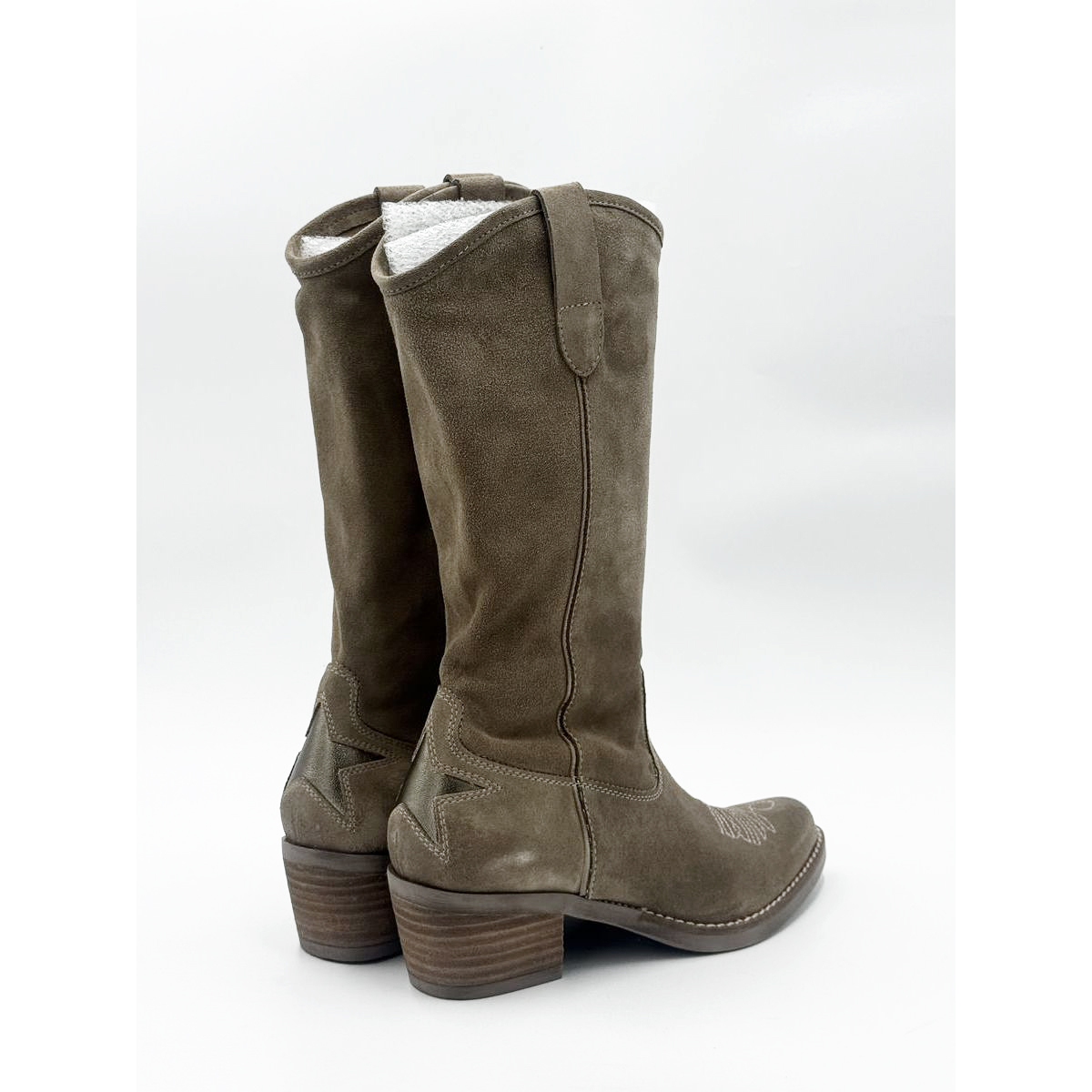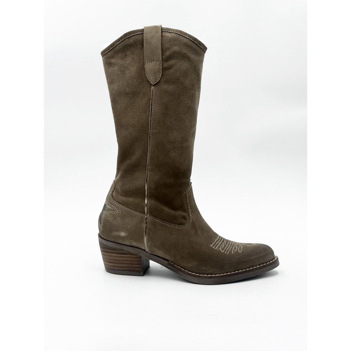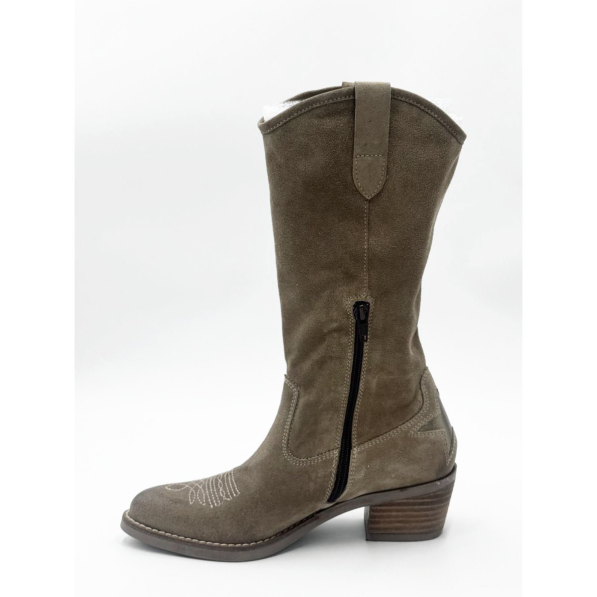 Le modèle Apolon Croûte Taupe de la marque portugaise MINKA est une boots western avec zip monté sur un talon de 5 cm.