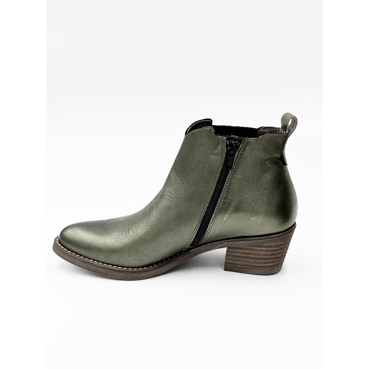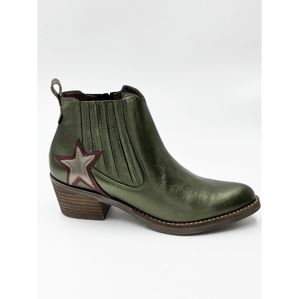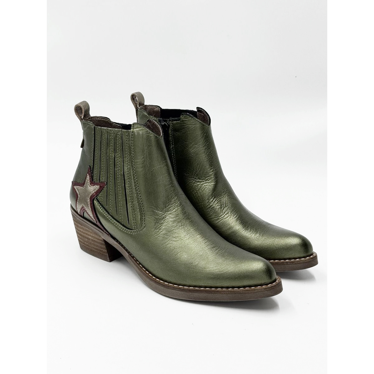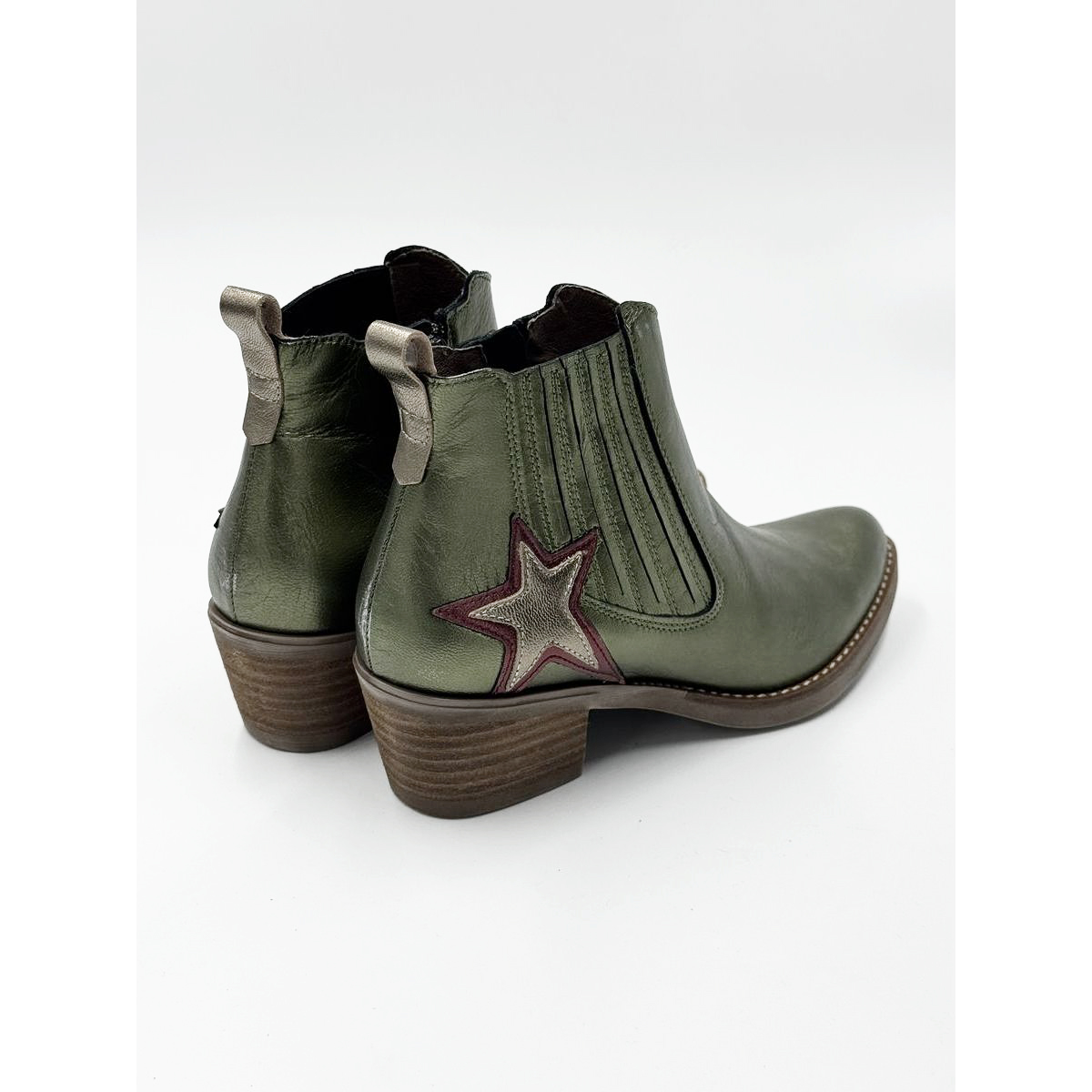 Le modèle Ariana Cabras Vert Rouge Doré de la marque portugaise MINKA est une boots tiags avec zip monté sur un talon de 5 cm.