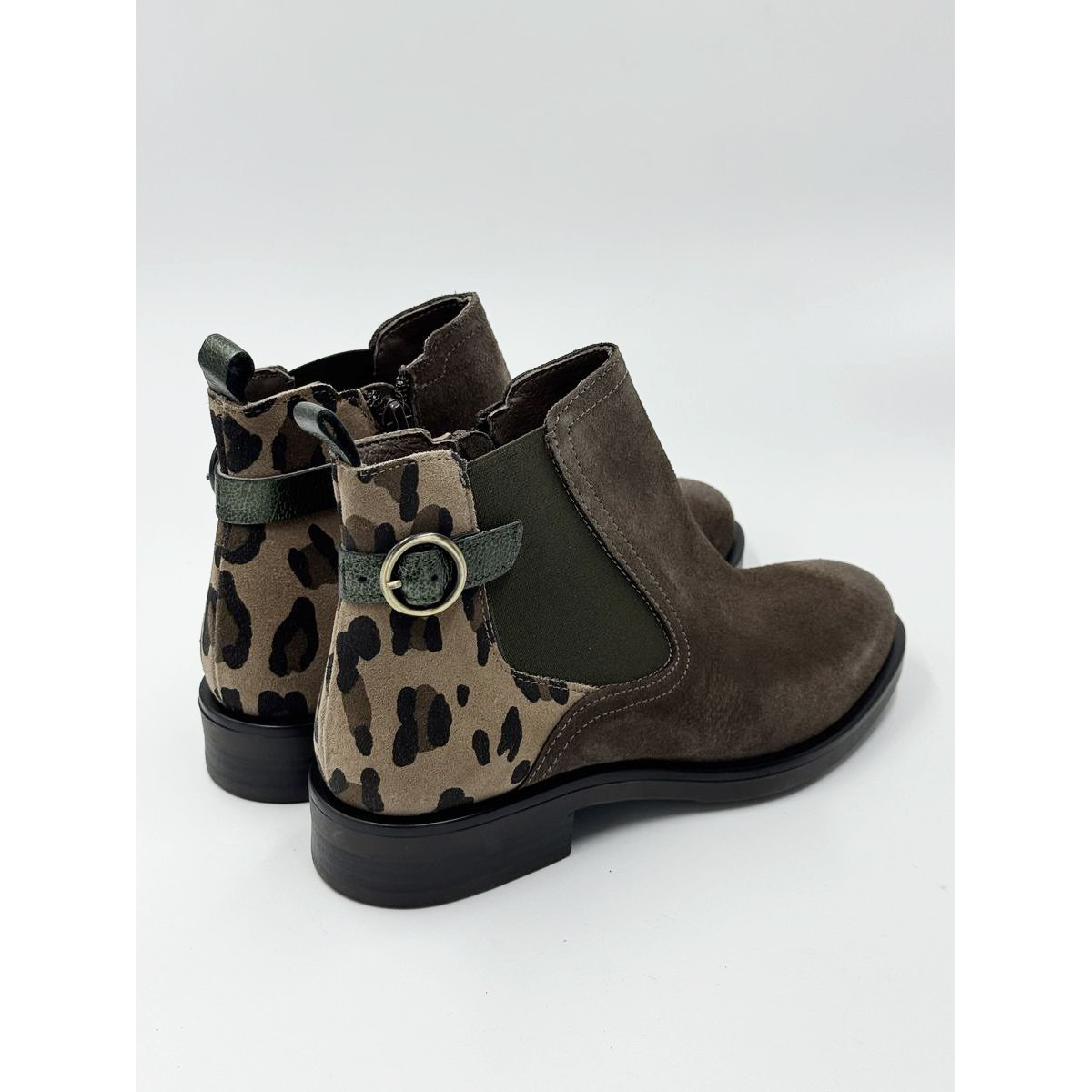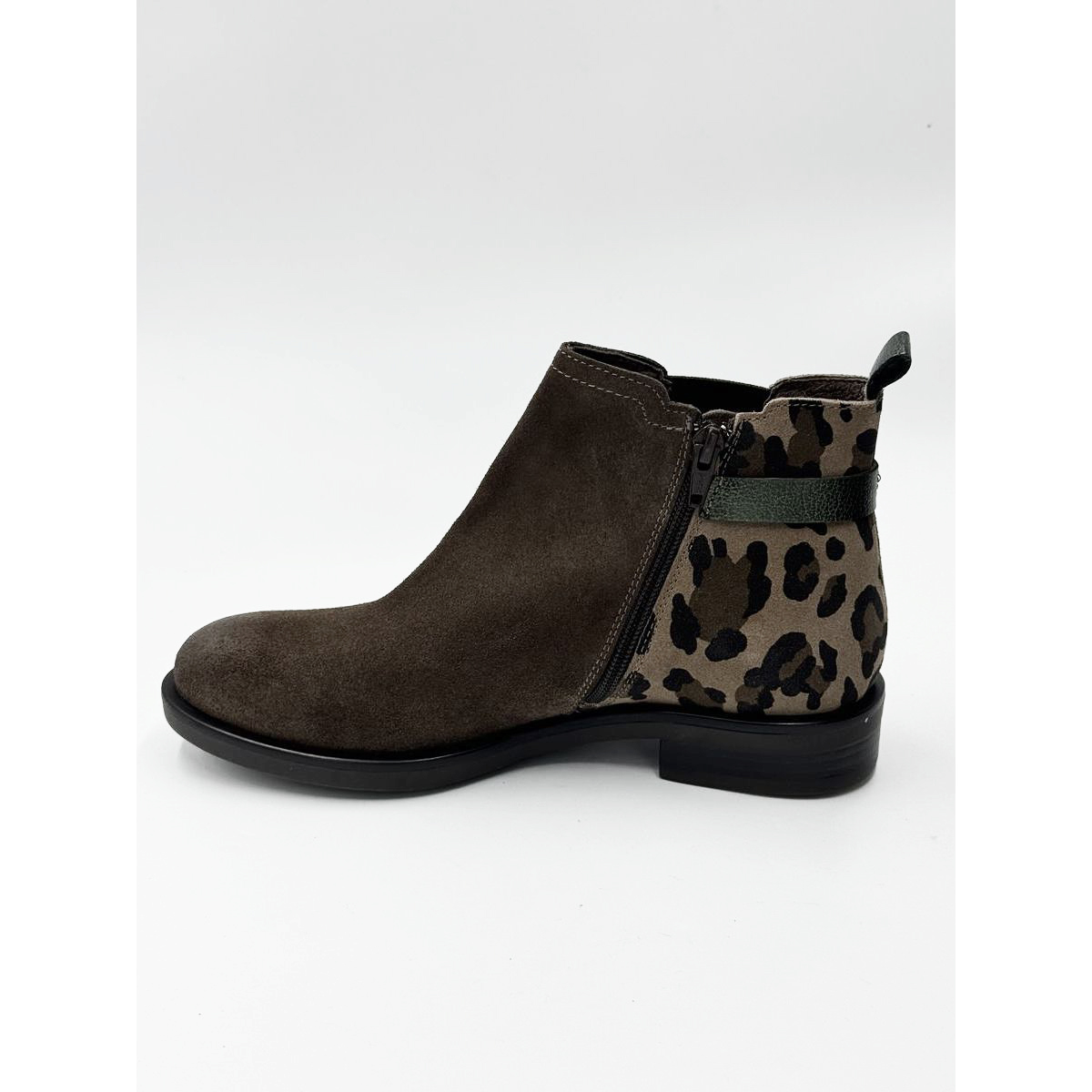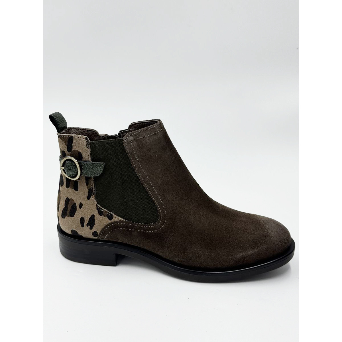 Le modèle Darcy Crute Marron Léopard Kaki de la marque portugaise MINKA est un Chelsea boots avec zip monté sur un talon de 5 cm.