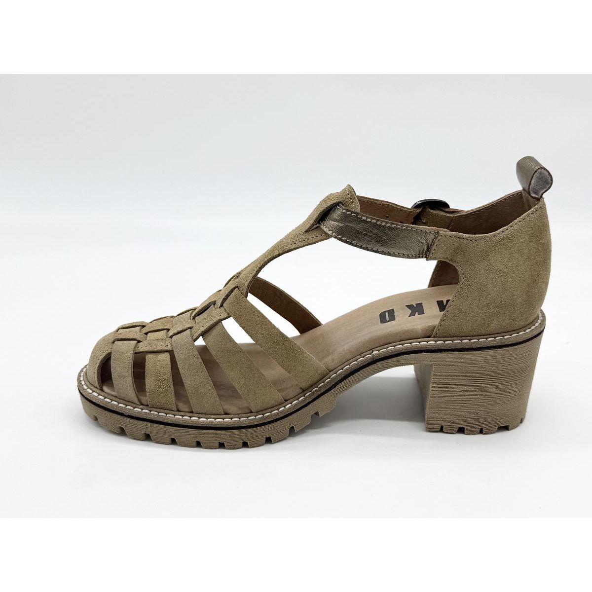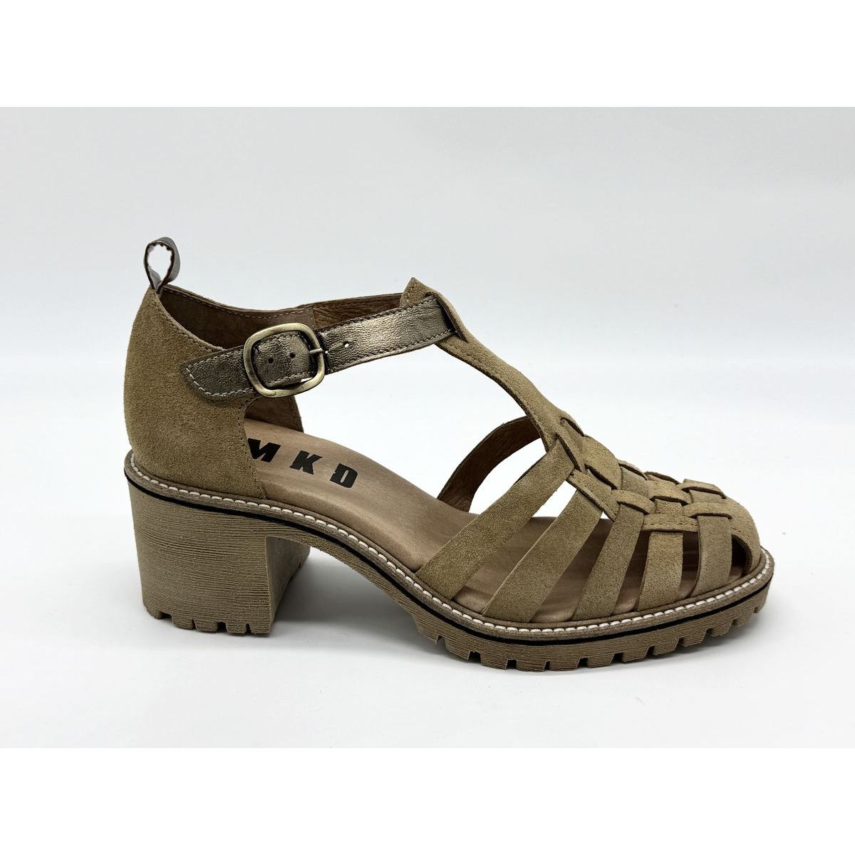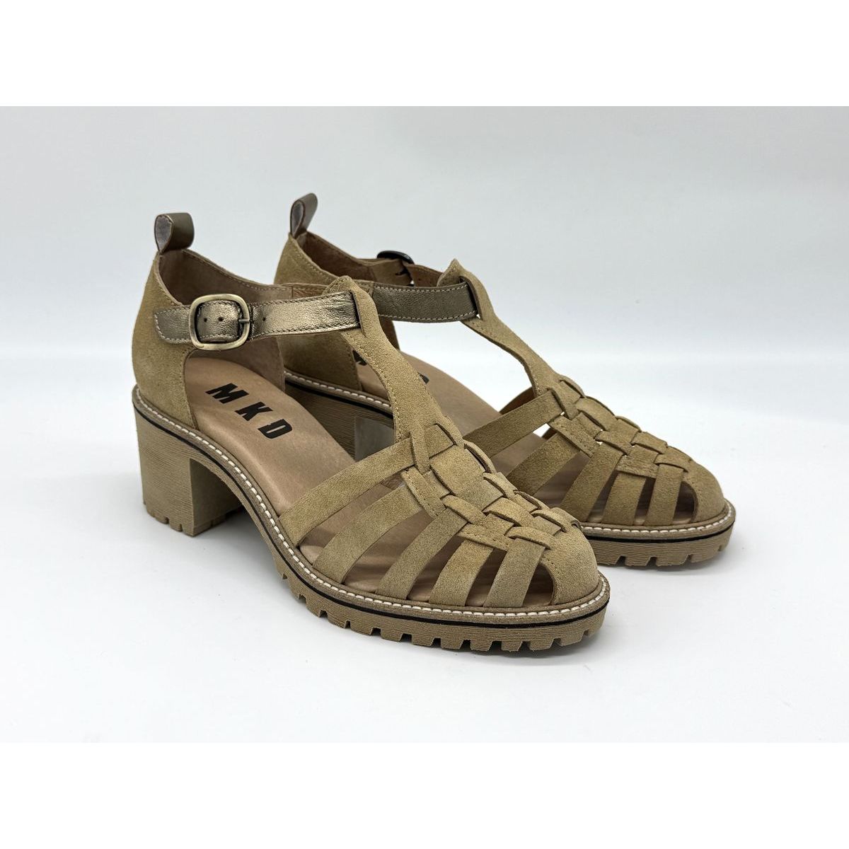 Le modèle Devil Croute Ambre de la marque portugaise MKD est une sandale méduse bout fermé montée sur un talon de 5.5 cm.