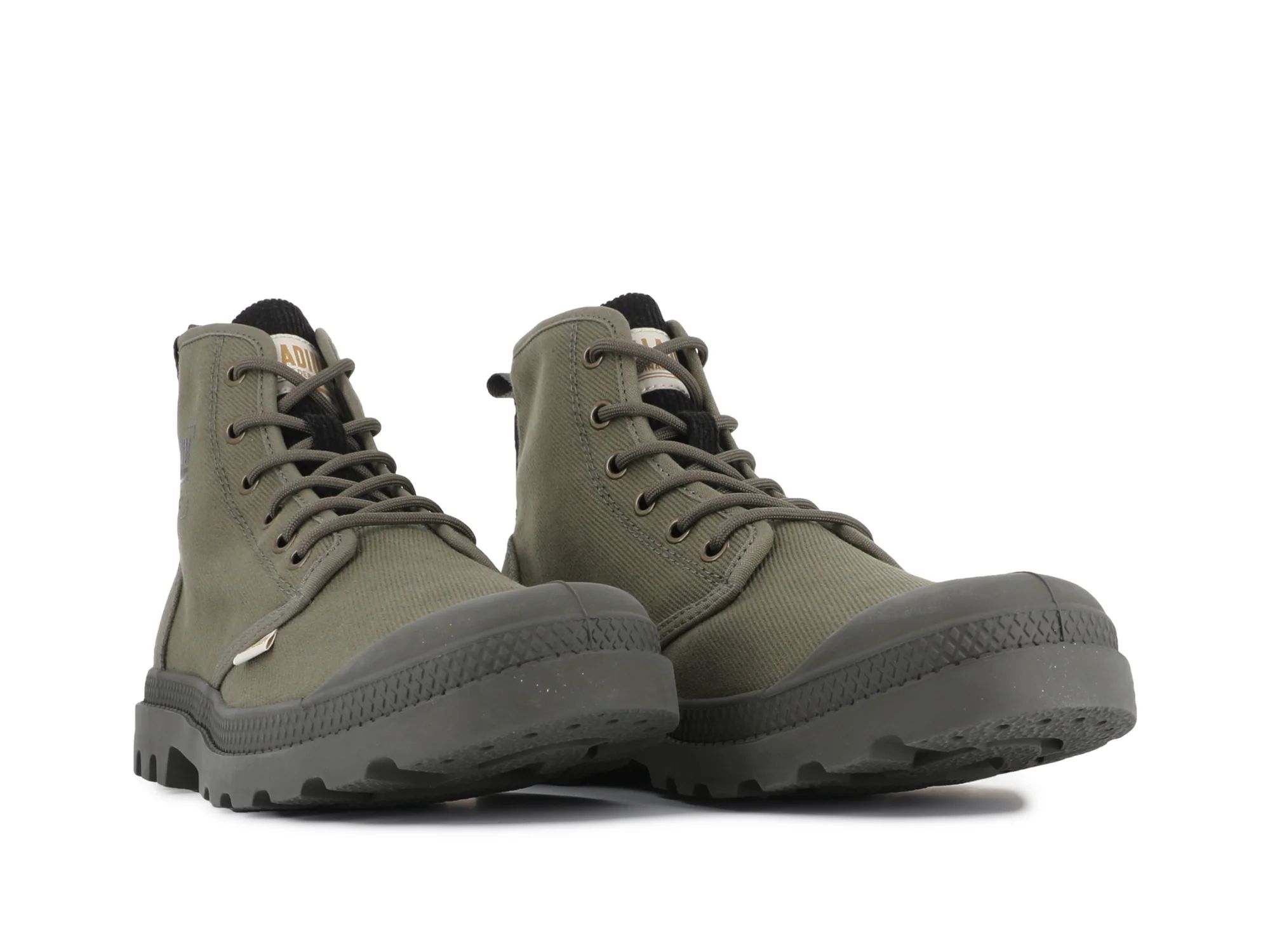 L’âme workwear à la française Inspirée par Détroit et l’héritage militaire de Palladium, cette chaussure allie toile organique résistante, détails en velours côtelé et semelle en caoutchouc emblématique.
