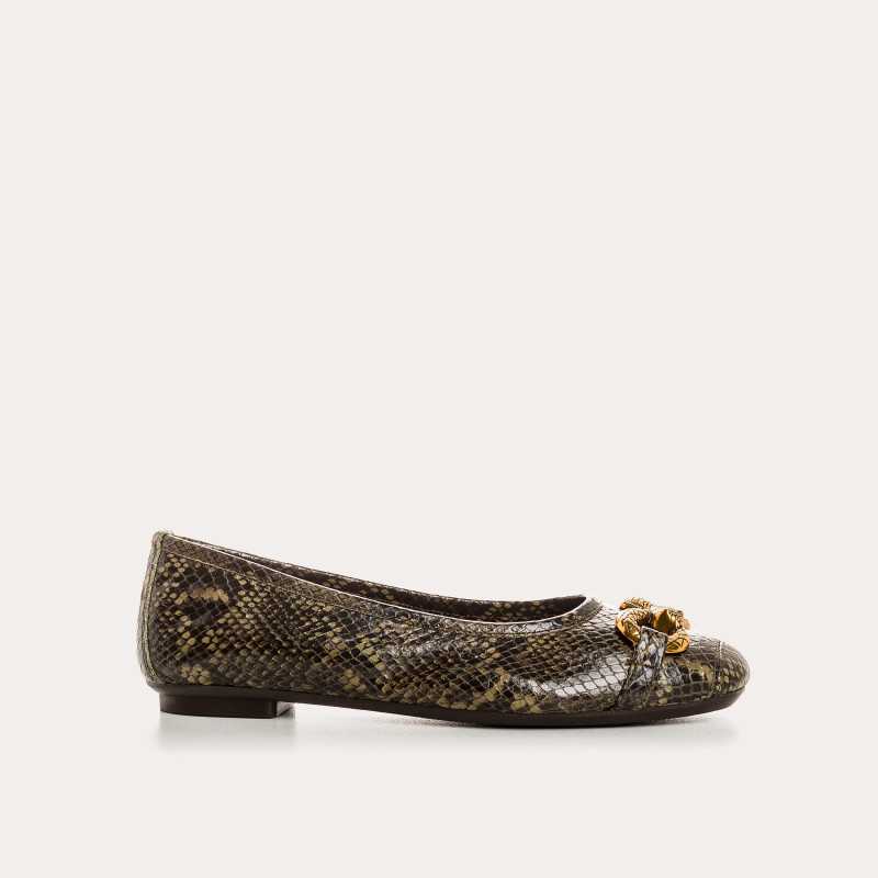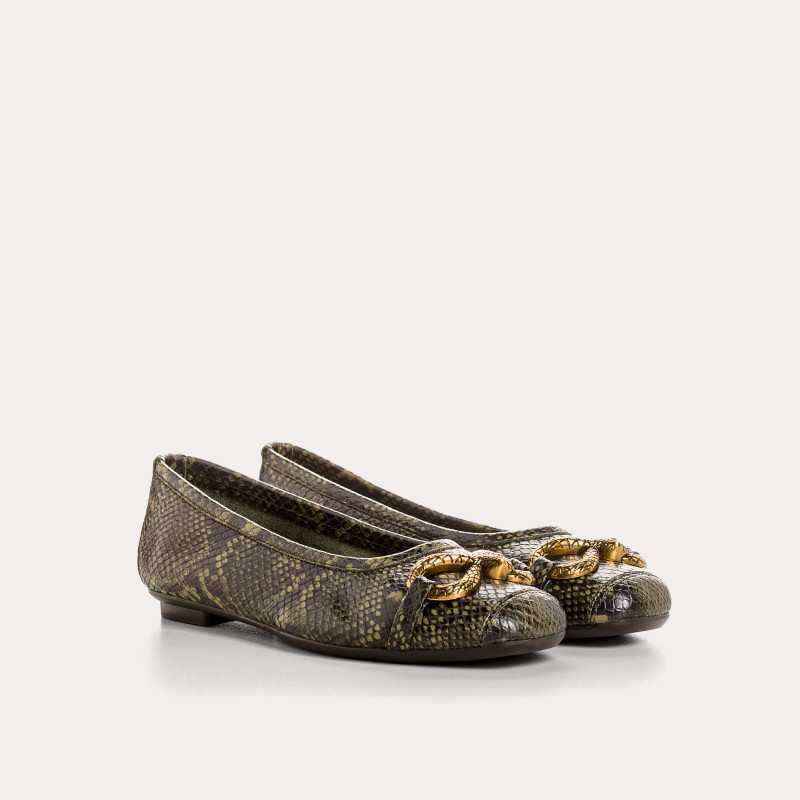 Le modèle Heve Cuir Python Kaki est une ballerine de la marque marseillaise REQINS