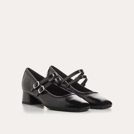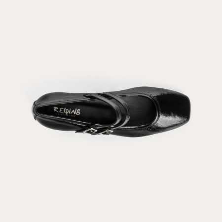 Le modèle Krysten Cuir Vernis Noir est un babies de la marque marseillaise REQINS
