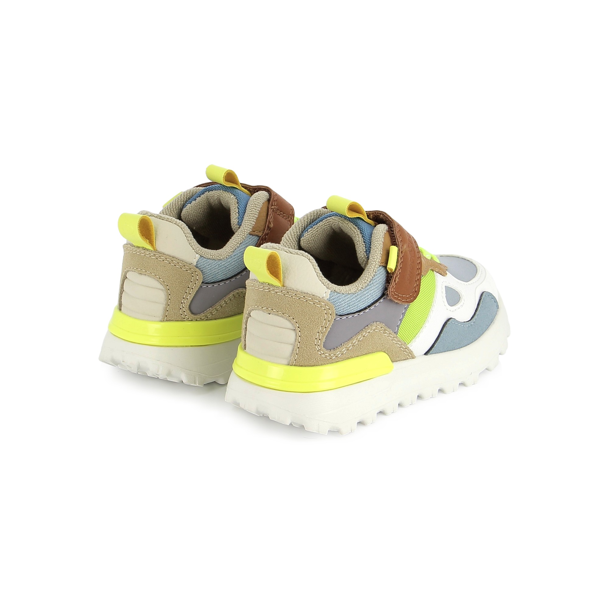 Cette chaussure souple et légère se chausse et se déchausse facilement grâce à ses lacets élastiques et son scratch.
