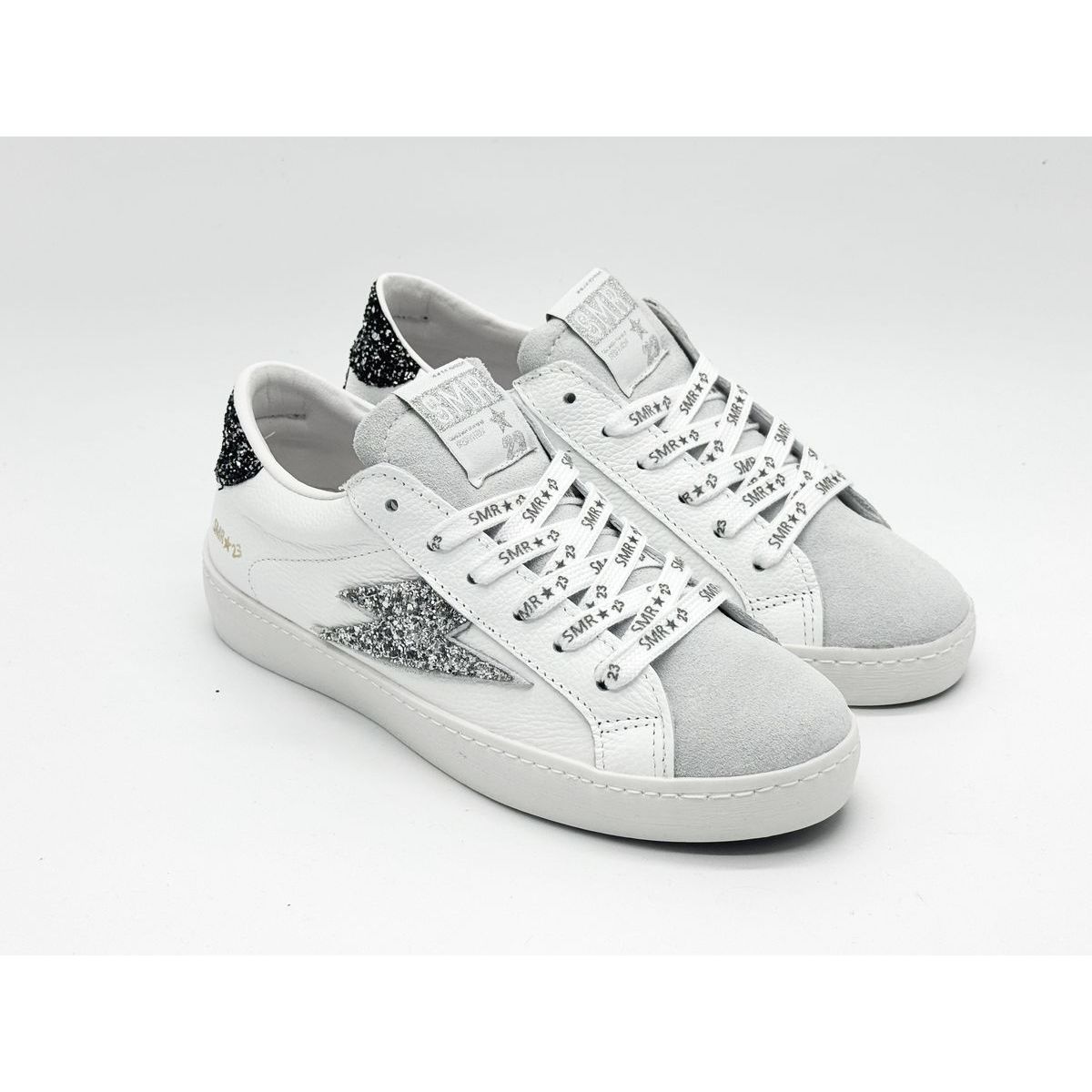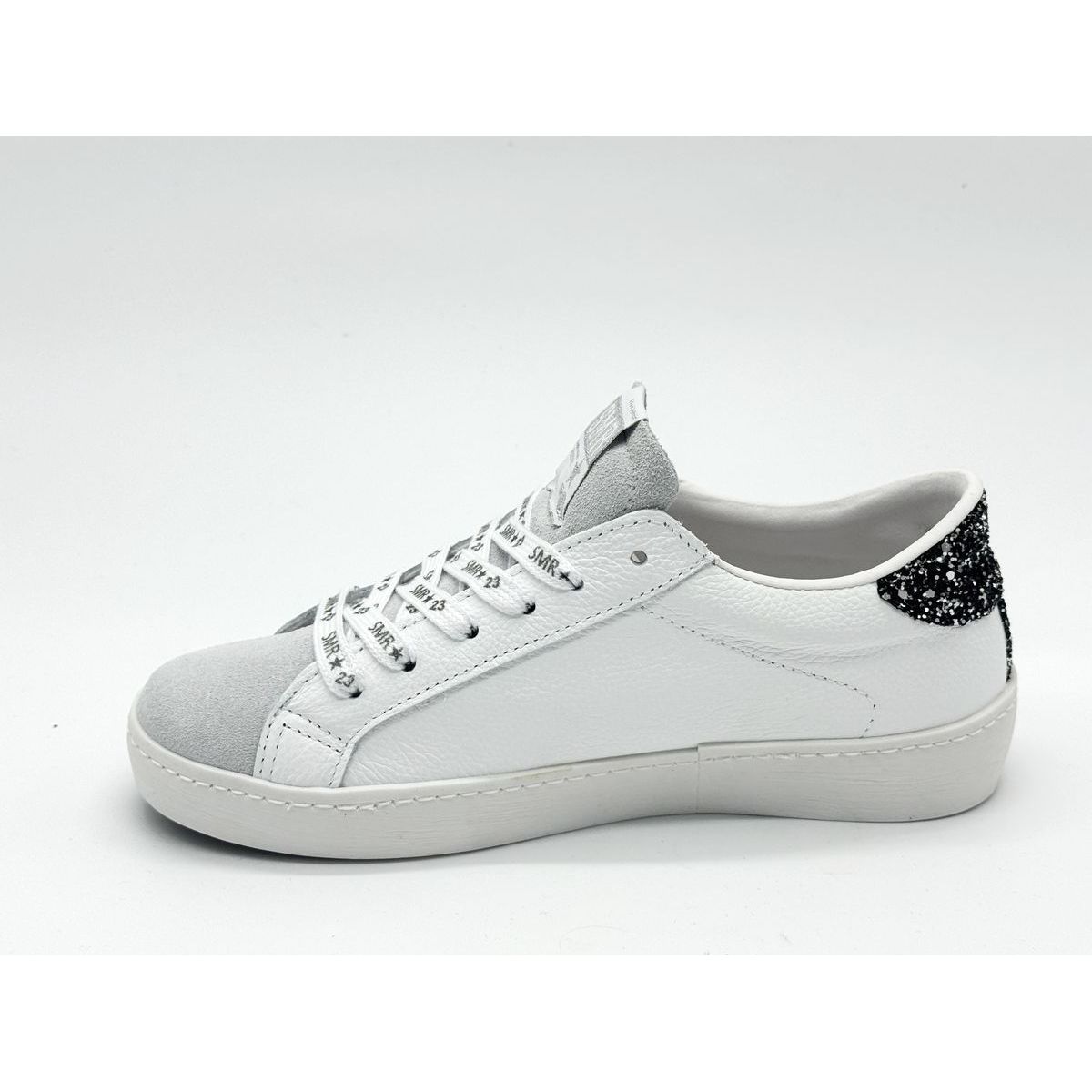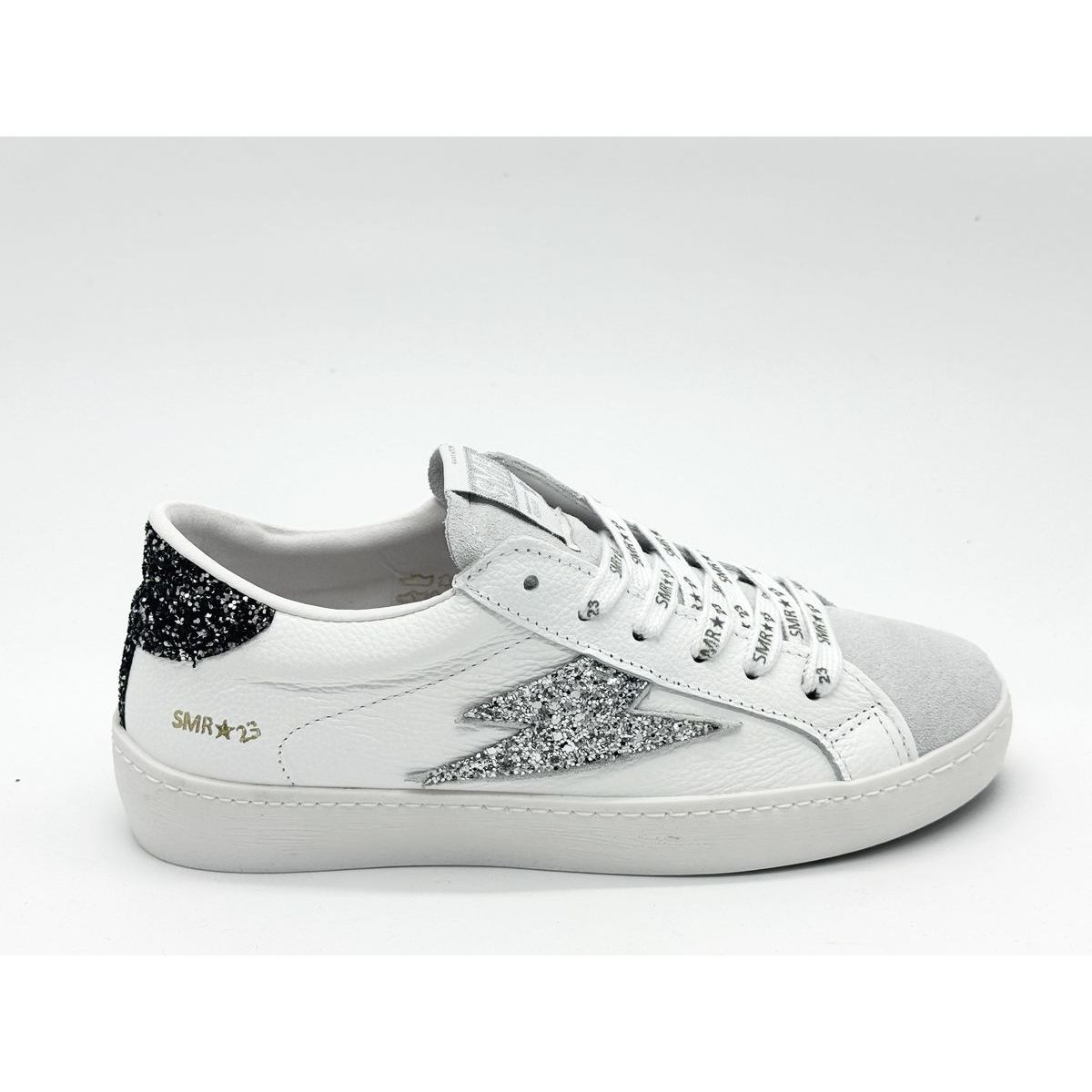 On retrouve la signature « SMR 23 » subtilement apposée sur la languette et le talon, soulignant l’identité de la marque.