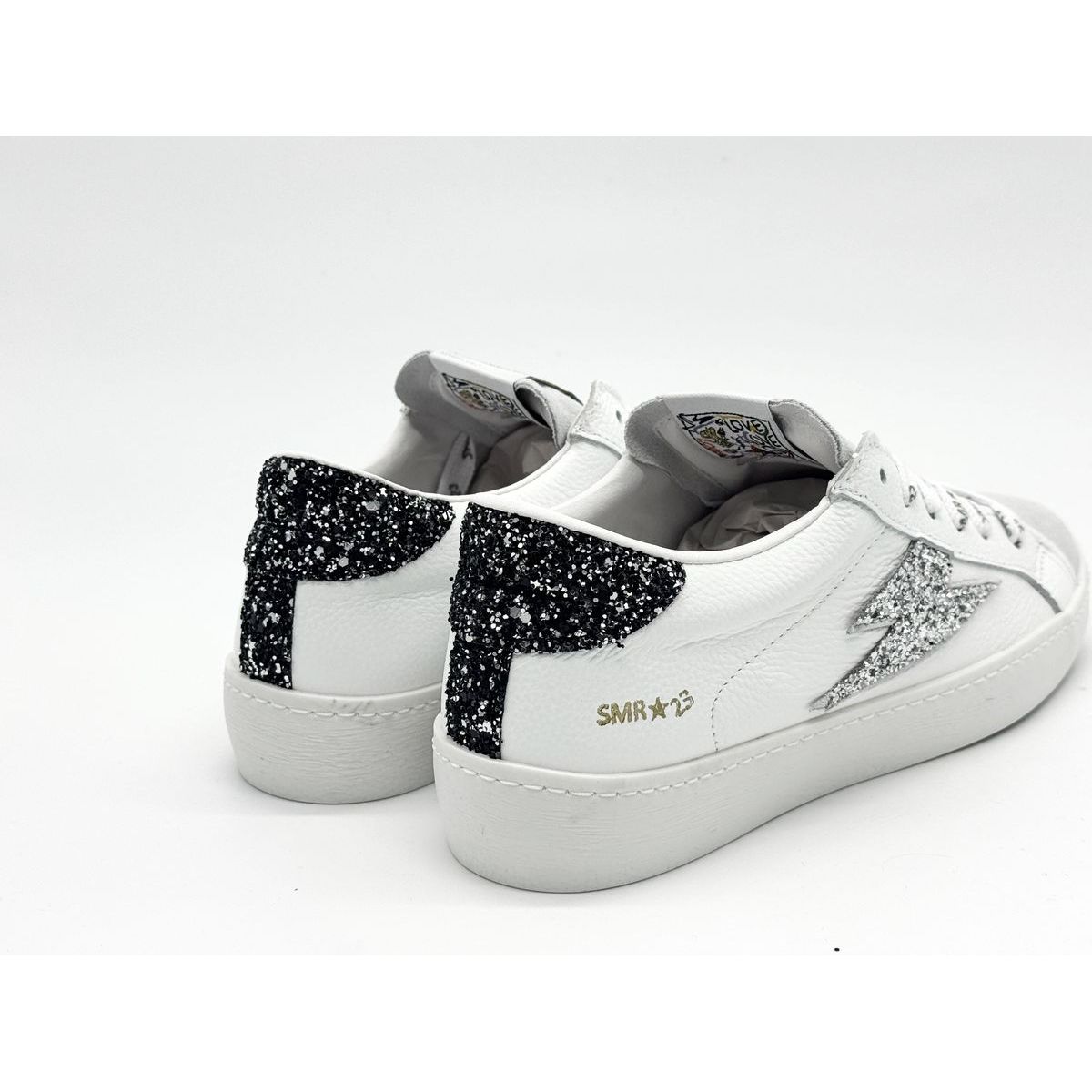 La basket Maya C782 Blanc Glitter Argent se démarque par son design argenté rehaussé de détails contrastés.
