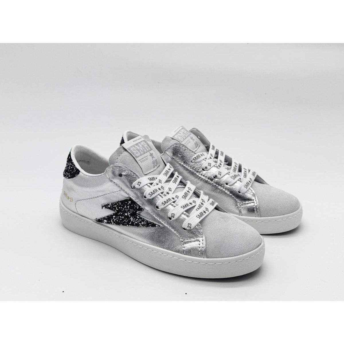 On retrouve la signature « SMR 23 » subtilement apposée sur la languette et le talon, soulignant l’identité de la marque.