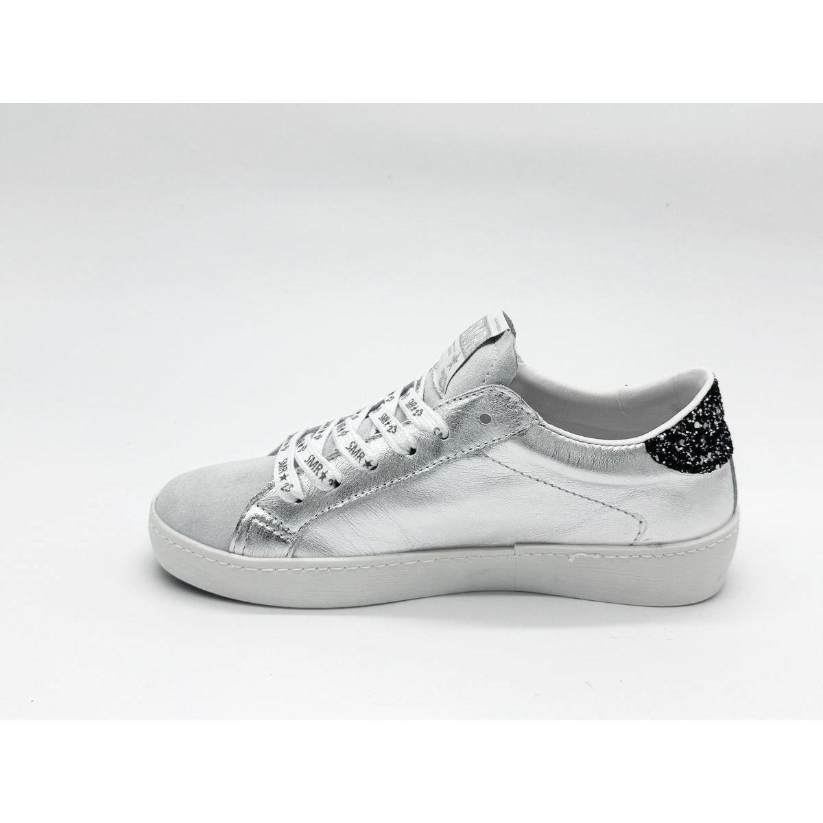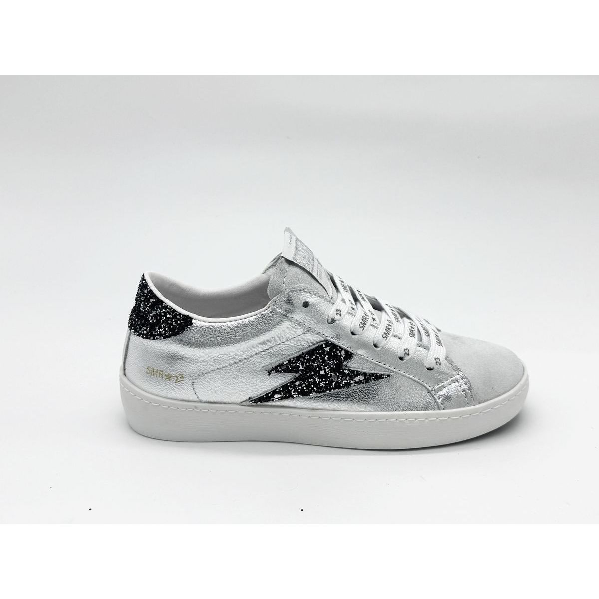 La basket Maya C784 Argent Glitter Gris se démarque par son design argenté rehaussé de détails contrastés.