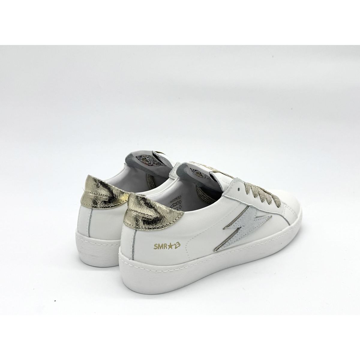 On retrouve la signature « SMR 23 » subtilement apposée sur la languette et le talon, soulignant l’identité de la marque.