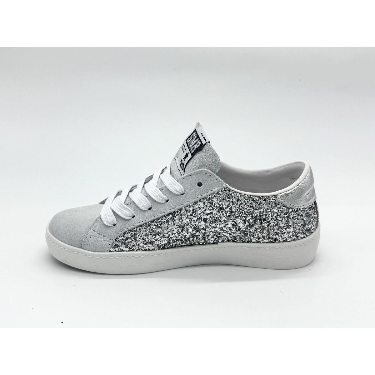 La sneaker Maya D374 Gris Nubuck Glitter Gris se démarque par son design gris rehaussé de détails contrastés.
