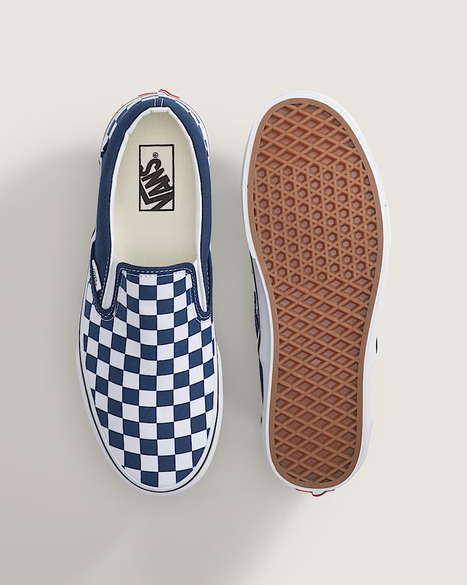 Le modèle CLASSIC SLIP ON CHECKERBOARD DEEP INDIGO de la marque Californienne VANS est le légendaire slip on élastique