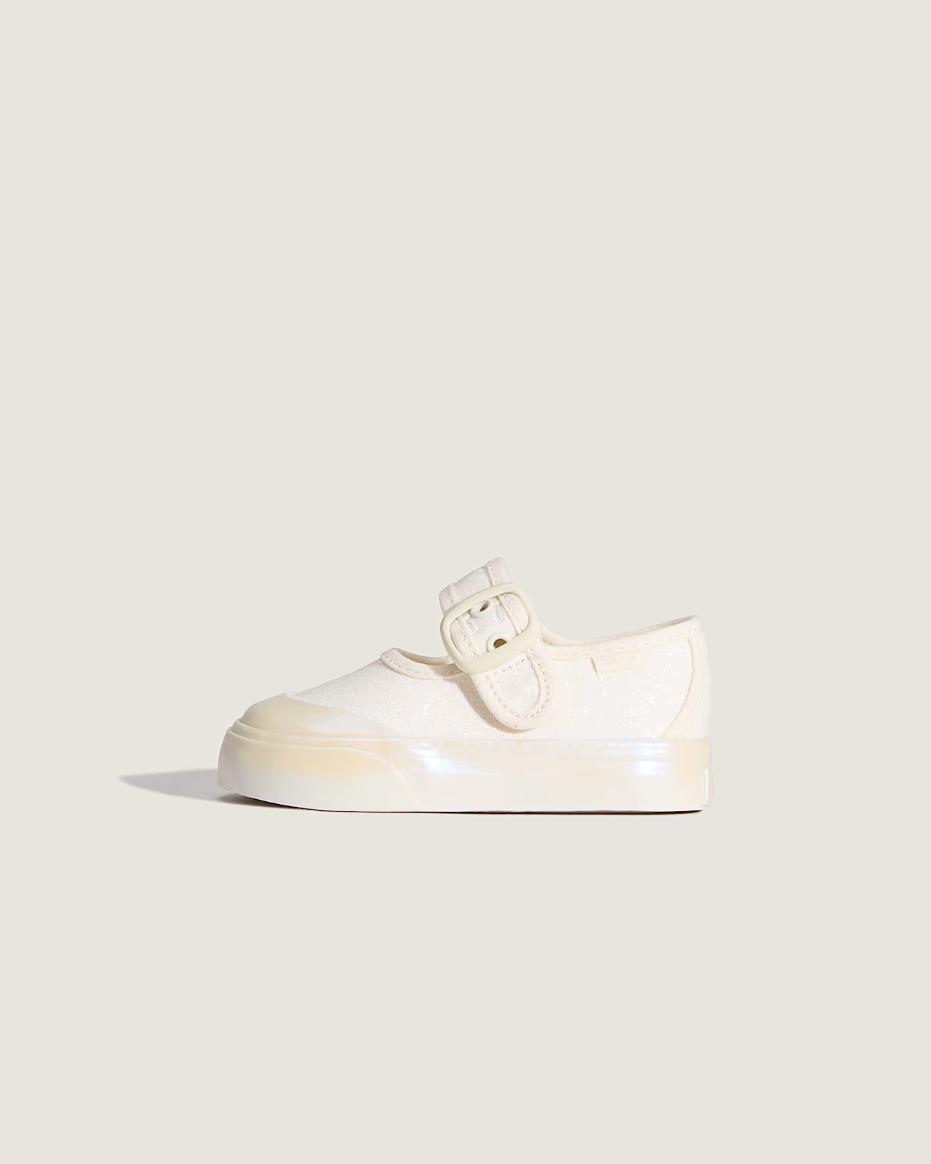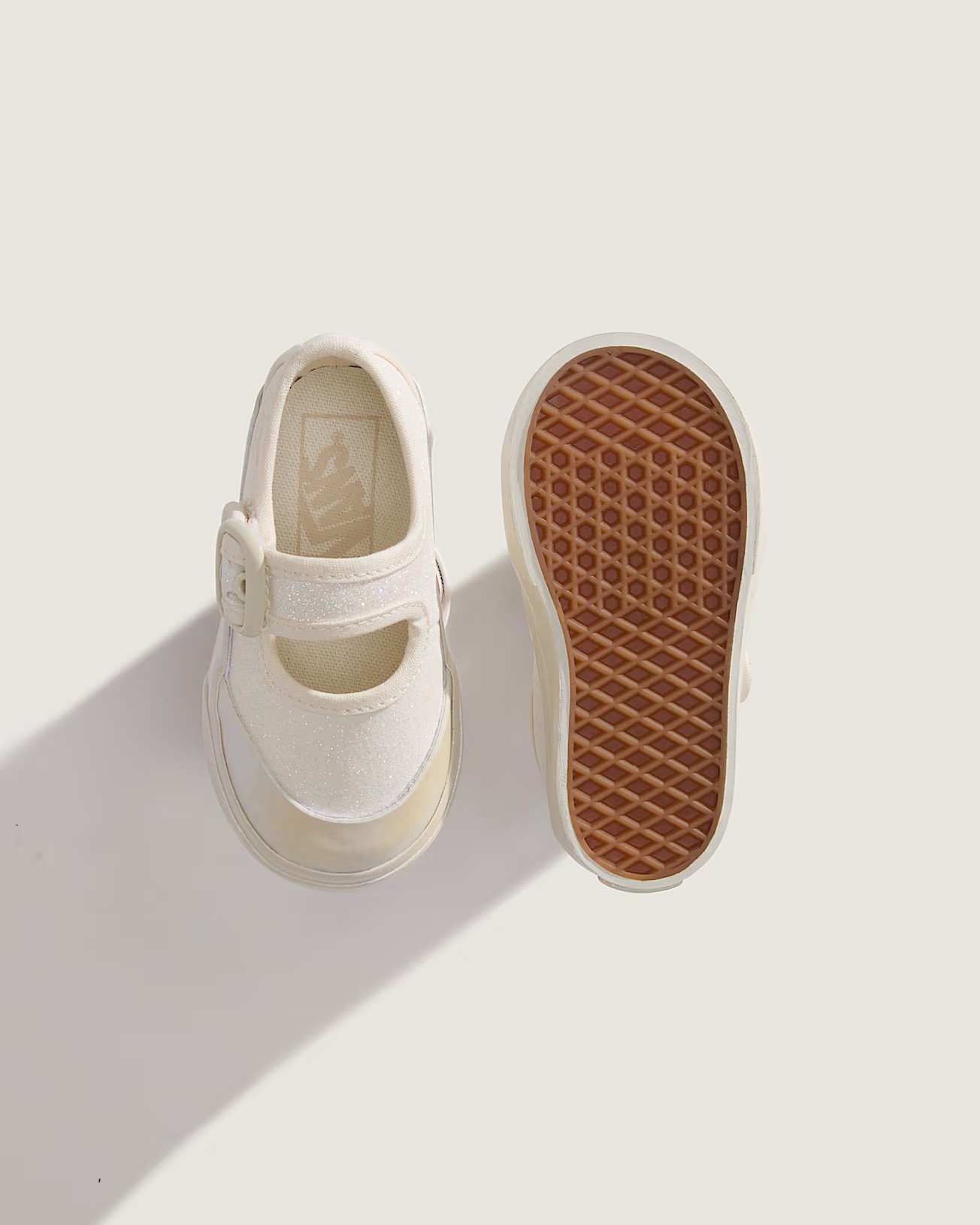 Le modèle VANS Mary Jane Glitter Pearl White Pink de la marque Californienne VAN’S est un babies à fermeture auto agrippante