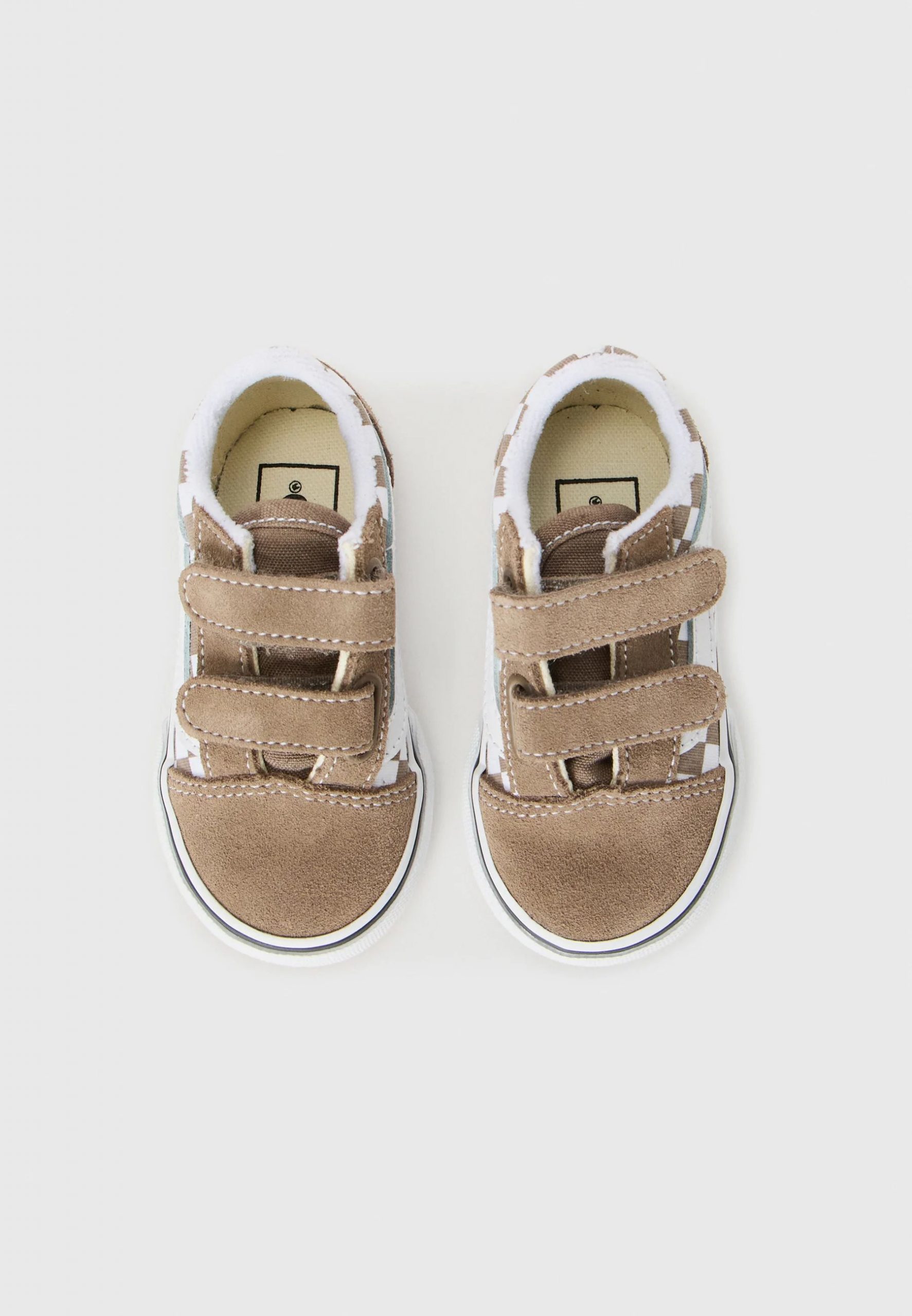 Le modèle Old Skool V Color Theory Checkerboard Walnut de la marque Californienne VAN’S initialement connu sous le nom de Vans #36, le modèle Old Skool a vu le jour en 1977, présenté ici en version pour les enfants.