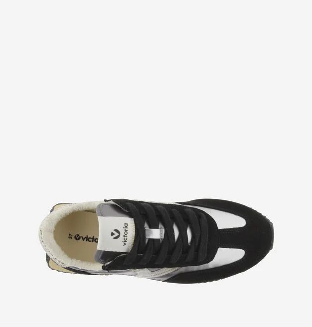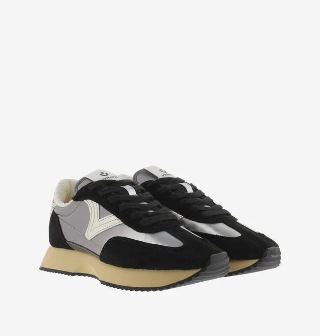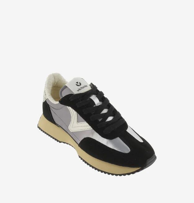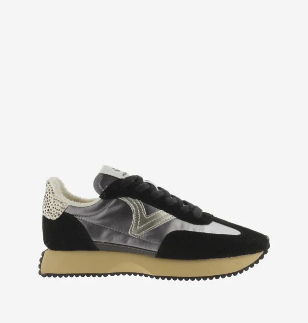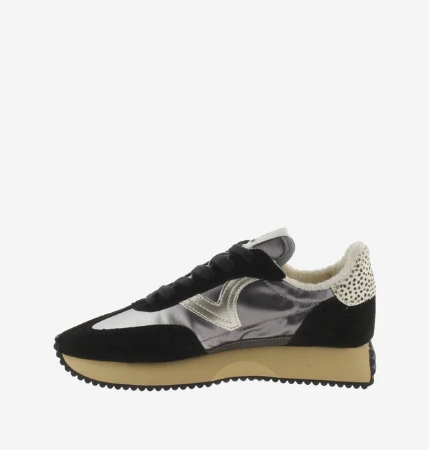 Le modèle Cosmos Nylon Métal Imprimé Animal de la maque VICTORIA est une sneaker confectionnée en nylon avec pièces en croûte de cuir et détails métallisés et en animal print.