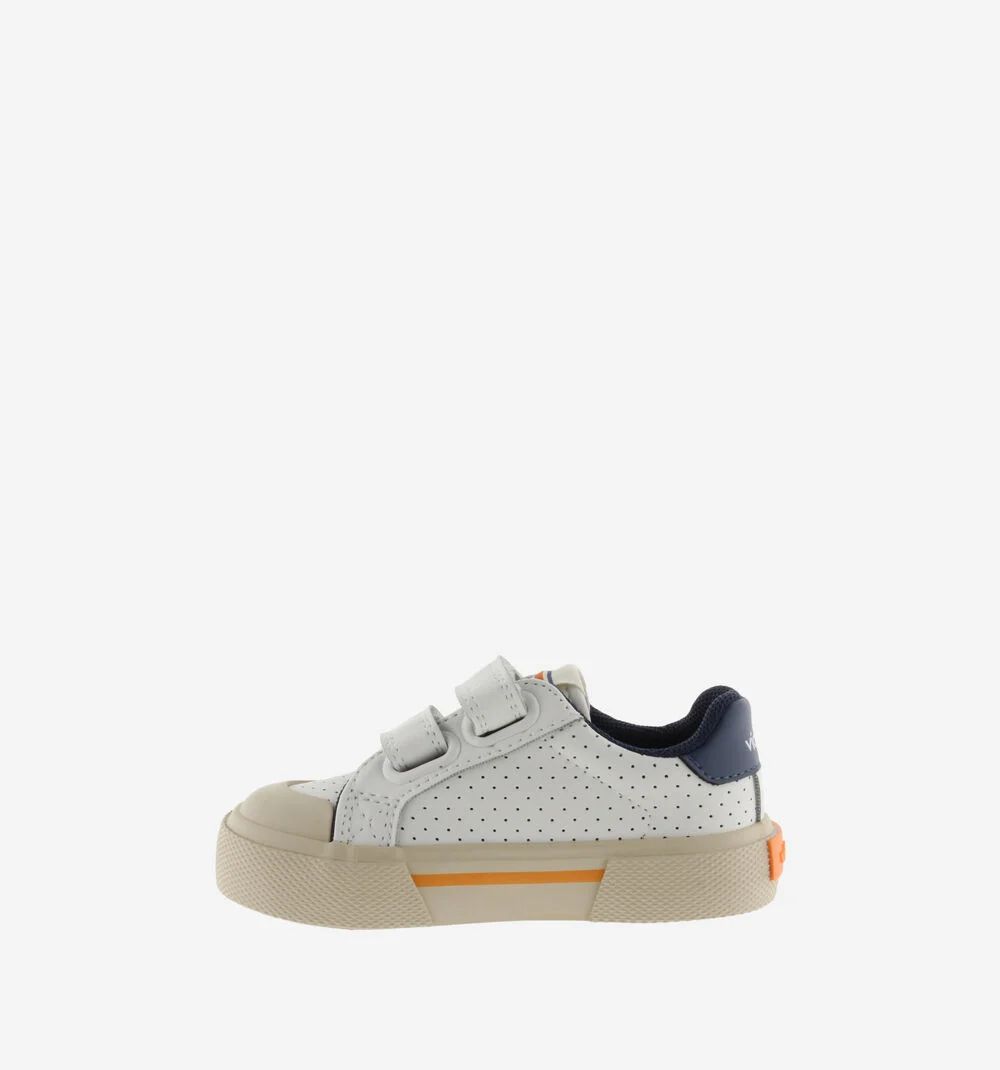 Le modèle Oliver Scratch Marino de la marque VICTORIA est une basket pour enfants fabriquée en effet cuir blanc micro-perforé.