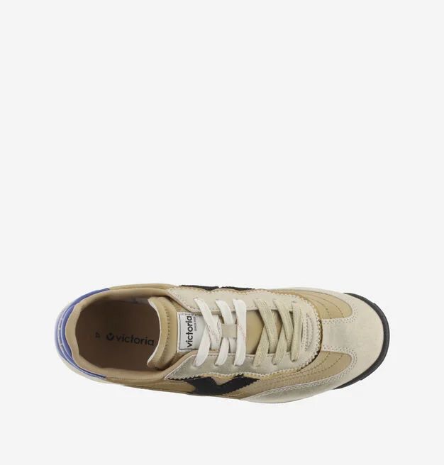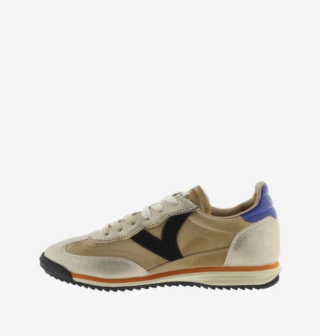 Le modèle Saturno Nylon Métal Cuir Fendu de la maque VICTORIA est une sneaker confectionnée en nylon avec des pièces en croûte de cuir ton sur ton et synthétiques.